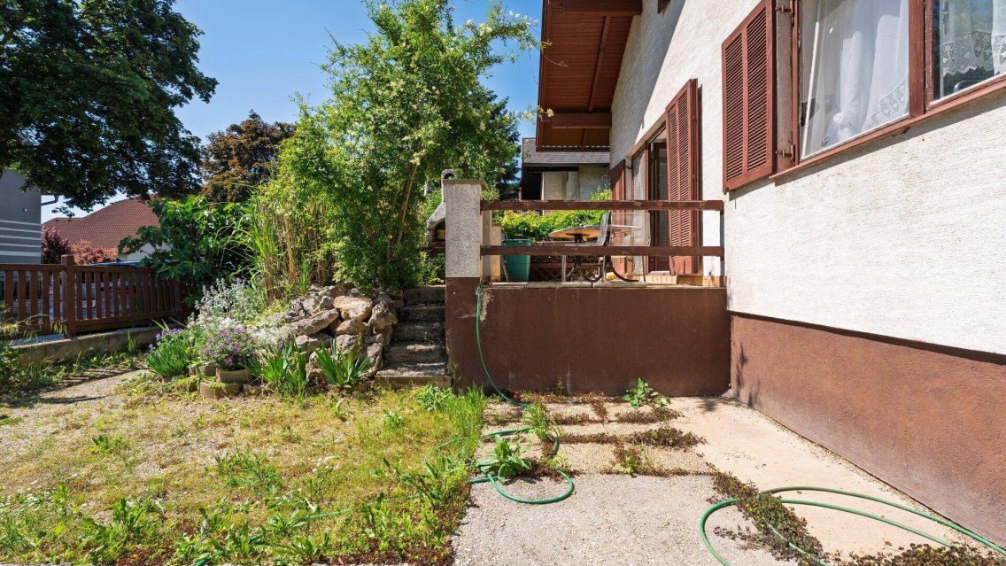Eine integrierte Brunnenpumpe dient der Gartenbewässerung und unterstreicht die durchdachte Ausstattung des Hauses. Garten und AußenbereichEin echtes Highlight ist der liebevoll angelegte Garten, der über einen Weg seitlich des Hauses zugänglich ist. Die Eigentümer planten bereits eine zusätzliche Terrasse im hinteren Gartenbereich – eine Umsetzung wäre mit entsprechender Genehmigung laut Bebauungsdichte denkbar.Im Zentrum des Gartens befindet sich ein großer Zierteich mit zahlreichen Kois, umrahmt von einer dekorativen Zierbrücke – ein besonderer Blickfang.
