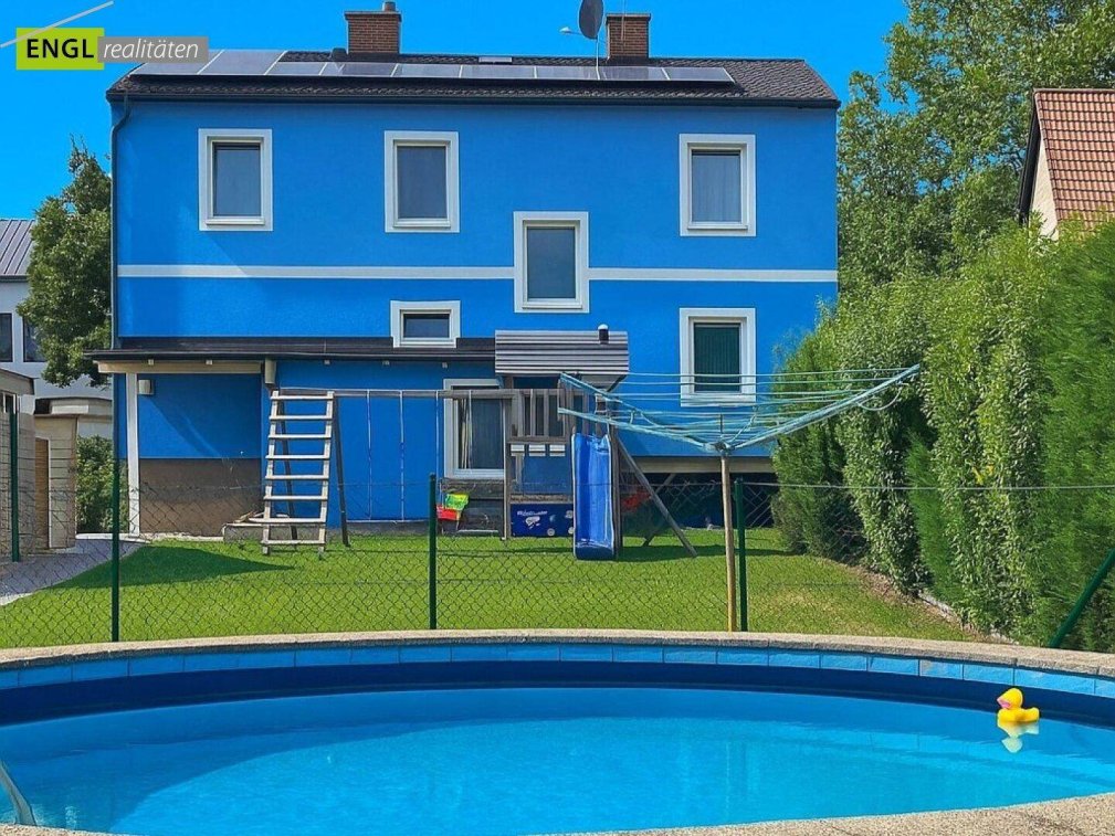 Dieses gepflegte Einfamilienhaus bietet auf ca. 175 m² Wohnfläche insgesamt 7 Zimmer, die flexibel als Wohn-, Schlaf- oder Arbeitsräume genutzt werden können. Durch die umfassende Sanierung und den Zubau im Jahr 2012 präsentiert sich die Immobilie in einem sehr guten Zustand.Die Ausstattung umfasst eine moderne Einbauküche, Bäder mit Wanne und Dusche sowie zeitlose Bodenbeläge aus Fliesen und Laminat, die ein behagliches Wohnambiente schaffen.Für eine effiziente Energieversorgung sorgt die 2023 neu errichtete 10,6 kWp Photovoltaikanlage mit einem 7,7 kWh großen, erweiterbaren Speicher. Ergänzt wird diese durch eine nachhaltige Brauchwasserwärmepumpe in Kombination mit Gas. Diese zukunftsorientierten Investitionen gewährleisten nicht nur niedrige Betriebskosten, sondern auch eine nachhaltige und sichere Energieversorgung.Durch die dreifache Verglasung der Fenster (inkl. Außenrollos und Fliegengitter) auf der Straßenseite sowie die zweifache Verglasung der Fenster (inkl. Außenrollos und Fliegengitter) zur Gartenseite wird ein angenehmes Wohnklima geschaffen. Der Lärmpegel ist als durchschnittlich einzustufen.Der Keller bietet großzügigen Stauraum, durch die gute Aufteilung lässt sich der Platz optimal nutzen und schafft Ordnung sowie zusätzlichen Komfort im Alltag.Ein besonderes Highlight ist der beheizbare Swimmingpool im hinteren Gartenbereich, inklusive Poolhaus und überdachter Terrasse, der Erholung und Freizeitspaß garantiert. Eine Gartenbewässerungsanlage sorgt zusätzlich für Komfort und erleichtert die Pflege der Außenanlage in den Sommermonaten.Neben dem Eingangsbereich befinden sich ein Nebengebäude sowie ein großzügiges Carport für zwei PKWs, das 2021 neu errichtet wurde. Weitere Stellplätze stehen auf dem Grundstück zur Verfügung. Die Außenanlage wurde 2022 modern gepflastert und aufwendig gestaltet.Betriebskosten ca.€ 138,- im Monat inkl. Wasserverbrauchsakonto, Abfall und Gemeindeabgaben