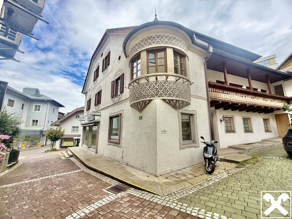 Im Stadtkern der historischen Kulturstadt Saalfelden in einer ruhigen Seitengasse erhebt sich dieses charmante Altbaugebäude mit zahlreichen Gestaltungsmöglichkeiten empor. Errichtet Ende des 16. Jahrhunderts besticht dieses markante Unikat mit eindrucksvollen Facetten, die im Zuge einer Neuentwicklung zum Vorschein gebracht werden sollten.Bislang wurde das aktuell leer stehende Gebäude als Geschäfts- und Wohnhaus genutzt. Zwei Garagen und zwei davor gelegene Freiplätze befinden sich neben dem Eingangsbereich. Auch Lagerräume sind von außen sowie vom Gebäude innen im hinteren Teil der Liegenschaft zugänglich. Hier gelangen Sie über das imposante Entree in das Stiegenhaus, welches im Erdgeschoss eine Verkaufsfläche mit zwei großen Räumen und einen Wohn- Lagerbereich im hinteren Teil trennt. Eine Waschküche befindet sich ebenfalls auf dieser Ebene. Von hier aus gelangen Sie in die beiden oberen Geschosse sowie in den Keller, der zusätzlichen Stauraum bietet. Die beiden oberen Geschosse wurden als Wohnräumlichkeiten genutzt und können mit umfangreichen Sanierungsarbeiten zu attraktiven und exklusiven Wohnungen umgestaltet werden, die urbanes und modernes Ambiente vereinen. Das erste Obergeschoss ist mit einem Balkon zum Innenhof bestückt. Von hier aus sowie auch über einen separaten Eingangsbereich von der Seitengasse wartet das aktuell bezeichnete Büro mit 3 Räumen und einem Badezimmer mit knapp 88 qm Fläche auf einen neuen Design. Über dem Dachgeschoss befindet sich ein Dachboden der mit Geschick ebenfalls in die Neugestaltung integriert werden kann.Es wird darauf hingewiesen, dass das Objekt und die Ausführungen nicht mehr dem heutigen Standard entsprechen und eine Generalsanierung unabdingbar ist, es liegen jedoch bereits eine Baugenehmigung und eine Bewilligung für einen Beherbergungsbetrieb vor.Auf die Tätigkeit als Doppelmakler wird ausdrücklich hingewiesen.