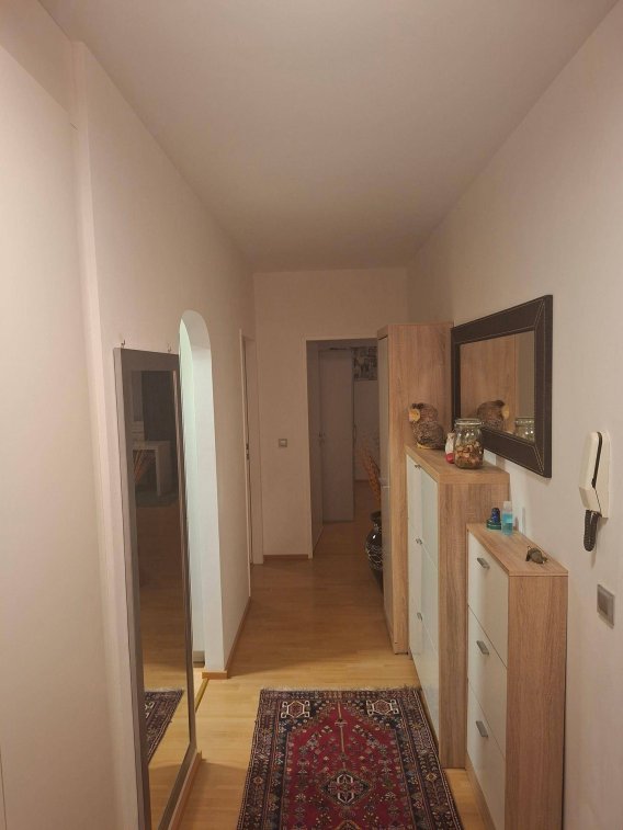 Die Wohnung befindet sich in einer ruhigen kleinen Wohnsiedlung entfernt von den Hauptstraßen, jedoch sehr zentral gelegen. In dem Apartment befinden sich 2 Schlafzimmer, ebenso wie ein Gästezimmer. Ebenfalls gibt es eine top gepflegte Einbauküche mit direktem Zugang zu Essbereich und Wohnzimmer. Vom Wohnzimmer gibt es einen Zugang zu einem kleinen gemütlichen Balkon, welcher einen Einblick in die Wohnsiedlung ermöglicht.
