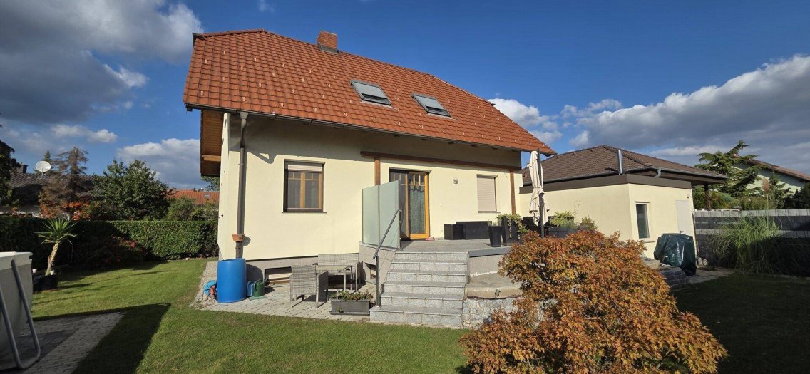 Dieses hochwertig und ziegelmassiv errichtete Einfamilienhaus in Kottingbrunn vereint modernen Wohnkomfort mit behaglicher Wohnatmosphäre und einer Lage, die Naturverbundenheit und Alltagstauglichkeit perfekt miteinander verbindet.LageDas Haus befindet sich in einer schönen Wohngegend von Kottingbrunn, nahe dem Wiener Neustädter Kanal.Der nahe angrenzende Rad- und Fußweg lädt zu ausgedehnten Spaziergängen, Joggingrunden oder Radtouren inmitten herrlicher Natur ein.Grundstück & WohnflächeGrundstücksgröße: 509 m²Wohnfläche: ca. 120 m²Vollkeller mit Sauna, große Garage, Terrasse und gepflegter GartenRaumaufteilungDas Haus besticht durch eine durchdachte und großzügige Raumaufteilung:Erdgeschoss:Großes, helles Wohn- und Esszimmer mit direktem Zugang zur TerrasseBüro – ideal für Homeoffice oder als Gästezimmer nutzbargeräumige Küche,Vorraum, Abstellraum, Gäste WCObergeschoss:3 geräumige SchlafzimmerModern ausgestattetes Badezimmer mit Badewanne und WCKellerVollkeller mit Sauna und vielfältigen Nutzungsmöglichkeiten (weitere Küche und kleines Bad vorhanden)Großzügige Garage mit zusätzlichem StauraumAusstattung & HighlightsDie Immobilie überzeugt durch eine solide Bauweise sowie zahlreiche hochwertige Ausstattungsdetails:Neue Erdwärmeheizung mit Kühlfunktion – energieeffizient & klimafreundlichHausstaubsauganlage für höchsten WohnkomfortWäscheschacht – praktisch im AlltagEchtholzparkett- und FliesenbödenVollholzfenster mit Außenjalousien und VollholzinnentürenRobustes Ziegelhaus mit sehr guter WärmedämmungTondach für langlebige QualitätSonnige Terrasse mit Blick in den liebevoll gestalteten GartenIhr neues ZuhauseDieses Einfamilienhaus bietet alles, was das Familienleben angenehm und komfortabel macht – viel Platz zum Wohnen und Arbeiten, moderne Technik für niedrige Betriebskosten sowie eine Lage, die Ruhe und Naturerlebnis mit Stadtnähe verbindet.Einziehen und wohlfühlen – dieses Haus ist nach Vereinbarung bezugsfertig und wartet auf seine neuen Besitzer!Der Vermittler ist als Doppelmakler tätig.