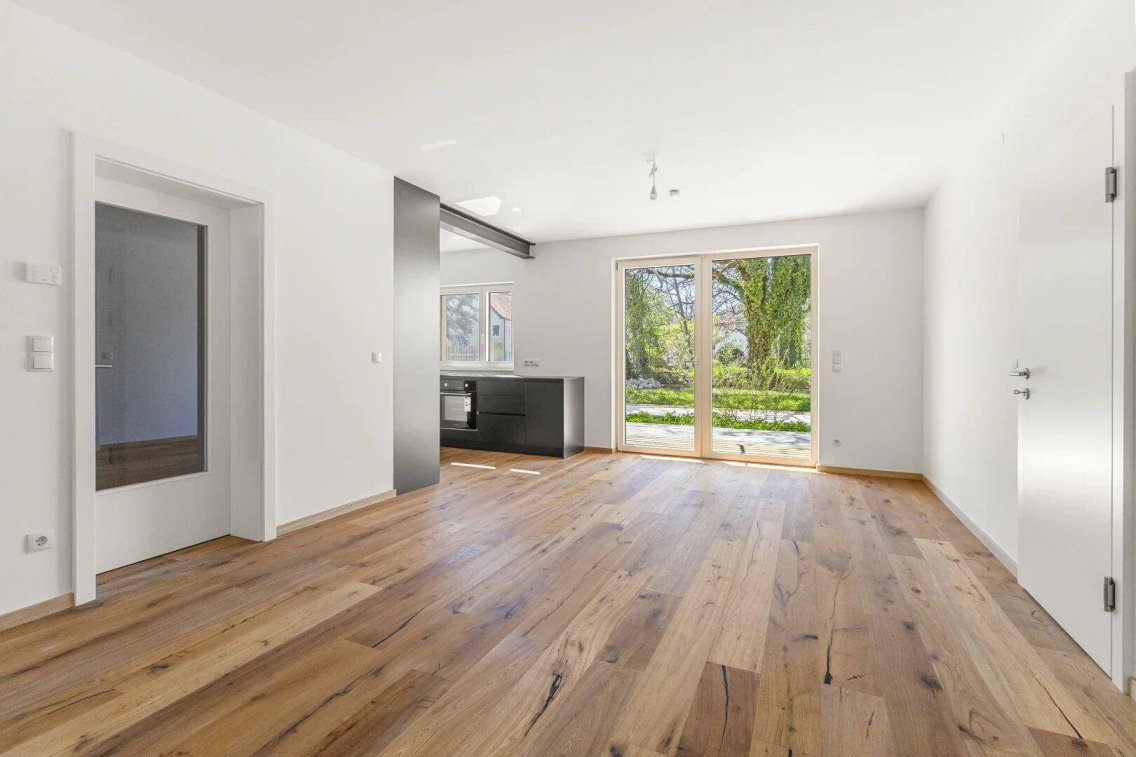 Vom Eingangsbereich gelangen Sie direkt zum Essbereich, welches mit einer vollwertigen Einbauküche ausgestattet ist. Im wunderschönen idyllischen Garten können Sie die warmen Sommernächte genießen.Besonderheiten dieser Wohnung2-Zimmerwohnungvoll ausgestattete Einbauküchemoderner Wohnkomfort mit Fußbodenheizung und nachhaltiger Bauweisegroße Fenster für lichtdurchflutete WohnräumeTerrasse samt GartenBadewanne samt Duschehochwertige Eichendielenböden Zugang zum Gemeinschaftsgarten die Parktherme, sowie Hauptplatz sind in wenige Gehminuten erreichbargeförderter Wohnbau mit attraktiven Finanzierungsmöglichkeiten