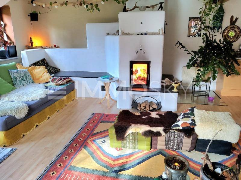 Der große Speicherofen mit Backfunktion und beheizter Liegefläche bringt alternativ in kalten Taqen für die gesamte 2 Etagenwohnung wohlige Wärme. Im Bad gibt es noch die Fußbodenheizung. Beheizt wird mittels Gasheizung, Josko Holzfenster sind 2 fache verglast und im Top Zustand.