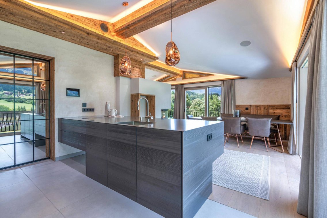 Die geplante Trennung bietet attraktive Möglichkeiten: vom Mehrgenerationenmodell über die Teilvermietung bis hin zur professionellen Nutzung als hochwertiges Zwei-Parteien-Domizil. Die Kombination aus modernem Ausbau, hochwertiger Ausstattung, genehmigter Planung und Fernblick auf die umliegenden Berggipfel macht dieses Objekt zu einem seltenen Angebot im Raum Kitzbühel.