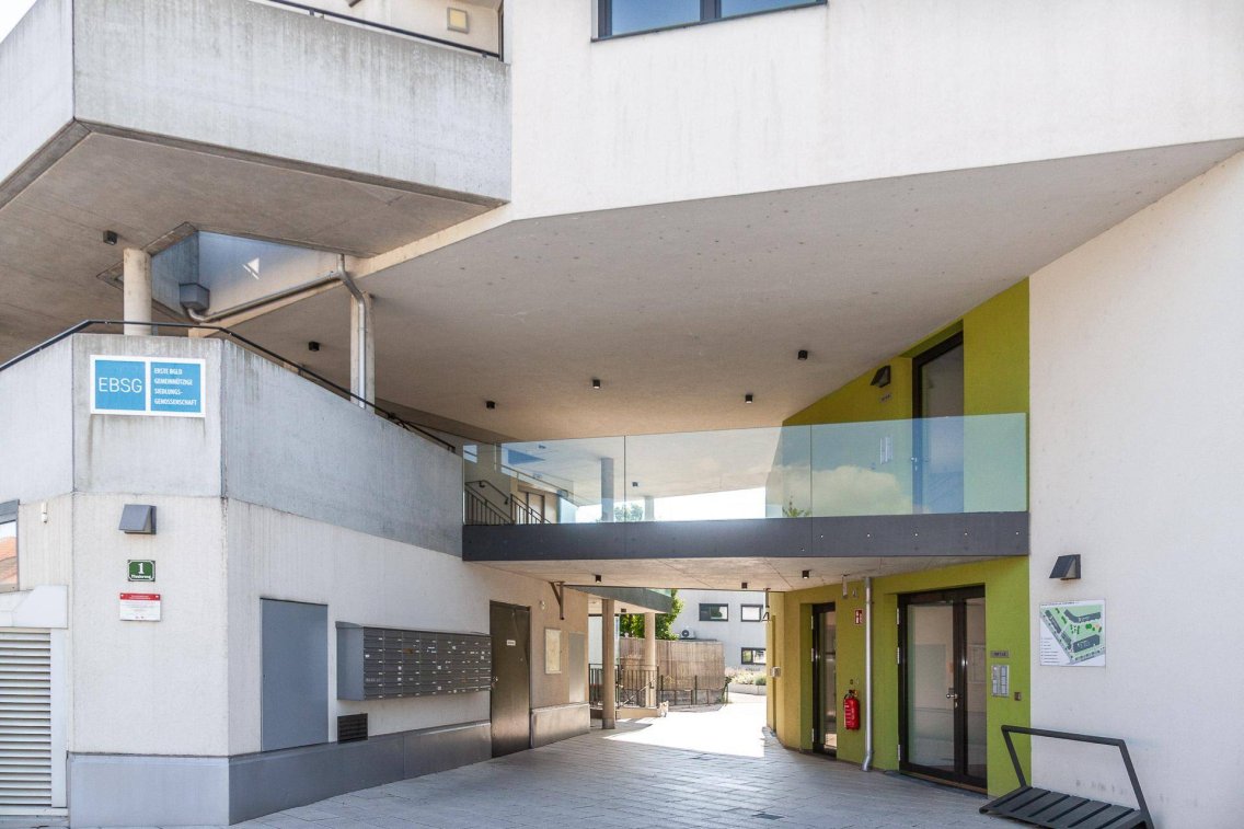 Das Herzstück der Wohnung ist die großzügige, offen gestaltete Wohnküche mit ca. 30 m², die viel Platz für Kochen, Essen und Wohnen bietet. Von hier aus gelangt man direkt auf den ca. 20 m² großen, nach Südosten ausgerichteten Balkon, der einen herrlichen Blick auf den Kalvarienberg und in den ruhigen, begrünten Innenhof eröffnet.