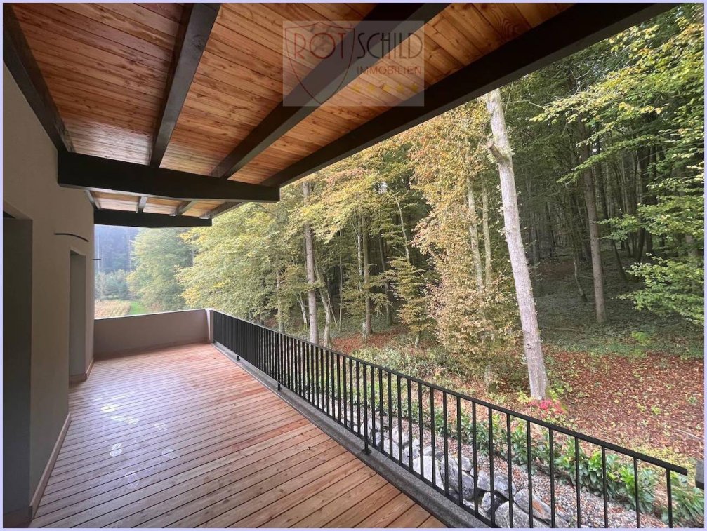 Die wunderschönen Terrassen sind 12 m2 groß, mit Blick über den Süd Osten und die zweite 22 m2 große Terrasse hat einen sensationellen Blick in den Wald.