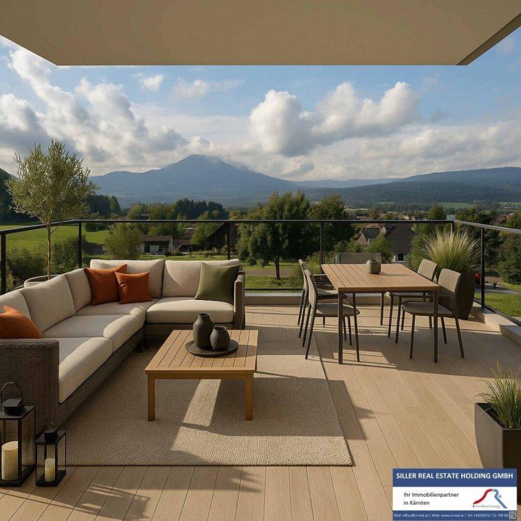 Die 22 m² große Terrasse eröffnet Ihnen einen traumhaften Blick auf die umliegende Landschaft.