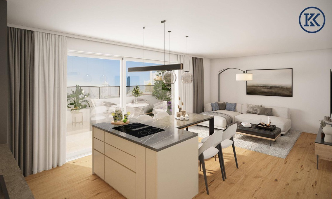 Schon beim Eintreten empfängt Sie ein helles und einladendes Vorzimmer, das Sie direkt zur separaten Toilette mit Handwaschbecken führt. Die großzügige Wohnküche mit offenem Grundriss wird zum Herzstück Ihres neuen Lebens – hier können Sie gemeinsam kochen, lachen und die Seele baumeln lassen. Von hier aus gelangen Sie auf Ihre sonnige, nach Süden ausgerichtete Terrasse – ein kleines Paradies, um entspannte Stunden im Freien zu genießen und den Alltag hinter sich zu lassen.