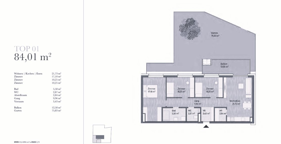 NEUBAU - Moderne 3-Zimmer Eigentumswohnung mit Garten (84,01m²)-Graz/Gries