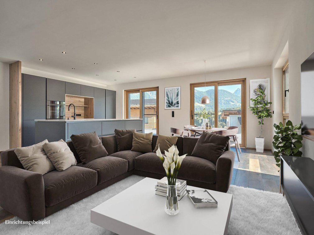 In sonniger Panoramalage mit Blick auf die umliegende Bergwelt entstand ein außergewöhnlicher Wohnkomplex mit zwei eleganten Maisonette-Wohnungen und einem exklusiven Penthouse.