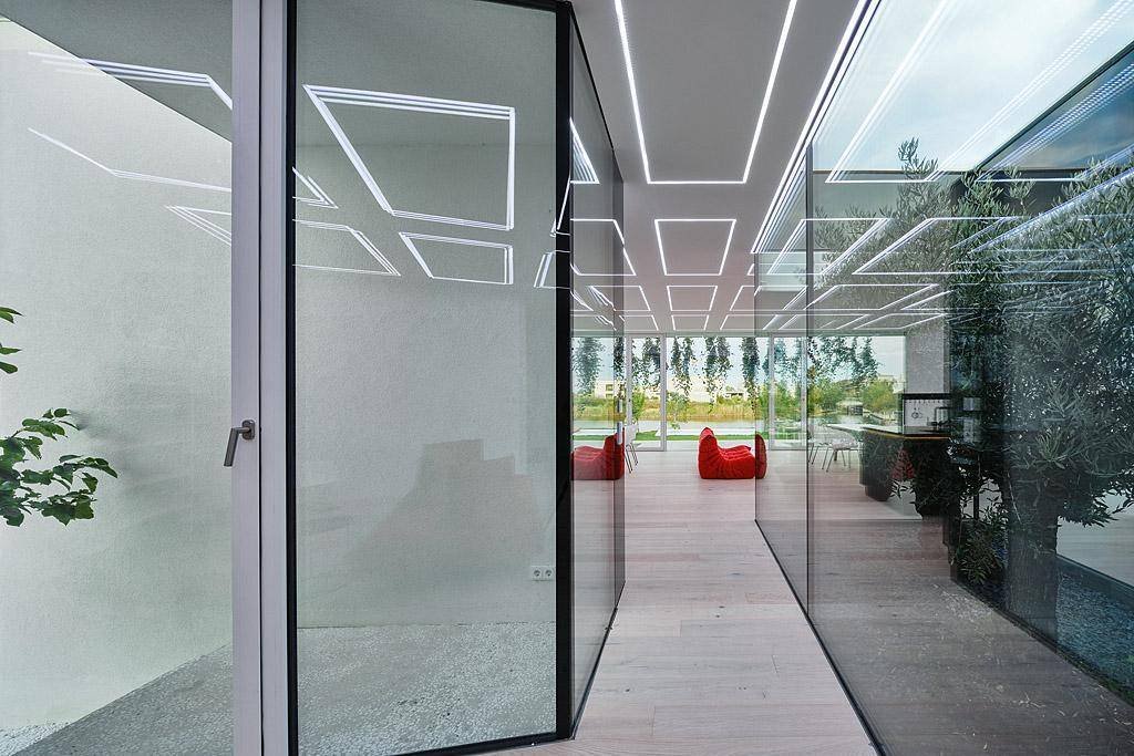 Hochwertige Materialien und einzigartiges Design – inklusive Innenhof mit 3 Olivenbäume im Wohnzimmer, der Natur und Wohnraum harmonisch verbindet.