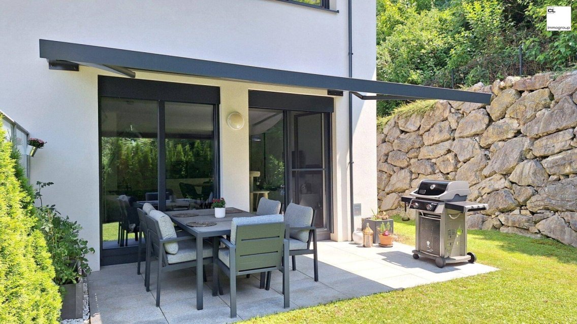 In dieser Wohnung fühlen Sie sich wie in einem Haus mit Garten!Die attraktive 4 Zimmer Maisonettewohnung präsentiert sich in einem modernen Mehrparteienhaus mit wenigen Einheiten, welches 2017 neu gebaut wurde. Die Lage ist unschlagbar in Seenähe, zentral und eingebettet in einer Wohnsiedlung und dennoch absolut ruhig gelegen. Das unterkellerte Wohnhaus wurde von einem renommierten Bauträger in massiver Bauweise errichtet und verfügt über einen Personenlift sowie über Duplex Garagenstellplätze. Für die kleinen Mitbewohner ist ein Spielplatz eingerichtet.Die Wohnung wurde hochwertig und mit viel Liebe zum Detail ausgestattet. Die maßgefertigte Tischlerküche überzeugt mit stilvollem Design und Qualität. Schubladensysteme der Firma Rauchenzauner, eine elegante Stein-Arbeitsplatte und Markengeräte bieten Komfort, der begeistert - für SIE und IHN! Hell und freundlich präsentiert sich der offene Wohnraum mit Echtholzparkett, der ebenfalls genügend Platz für den Essbereich bietet. Von hier aus gelangen Sie auf die herrliche Terrasse und den eigenen Garten, der zu weiteren Gestaltungsmöglichkeiten anregt. Für heiße Sommertage ist eine XL- Markise vorhanden, ebenso elektrischer Raffstore mit Insektenschutzgitter an den Fenster- und Türelementen. Über eine Treppe gelangt man in das Obergeschoss mit 3 Schlafzimmern und einem Tageslicht- Bad mit WC.Insgesamt verfügt die Wohnung über ca. 95,20 m² und teilt sich wie folgt auf:Wohnetage EGVorraum mit Platz für Ihre Garderobe