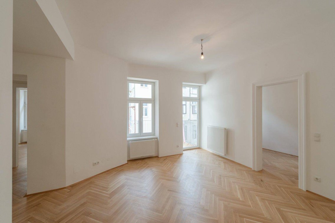Zustand: Erstbezug nach GeneralsanierungRaumaufteilungVorraumWohnkücheSchlafzimmerSchlafzimmerBadezimmer mit Dusche und WCGäste-WCAbstellraumBalkon(Siehe Plan und Beispielbilder einer bereits fertiggestellten Wohnung desselben Bauträgers.)AusstattungDie Wohnung wird mit hochwertigen Materialien und Liebe zum Detail ausgestattet:Edler Eichenparkettboden in allen WohnräumenModern verflieste Nassräume mit MarkenarmaturenFußbodenheizung in allen RäumenErstklassige Bau- und Ausstattungsqualität – genaue Beschreibung auf Anfrage verfügbarDas gesamte Wohnhaus wird derzeit umfassend generalsaniert. Im Zuge dessen werden auch das Dachgeschoss ausgebaut und ein Aufzug eingebaut.Einmaliger Lifterrichtungsbeitrag:1.OG - 2.000 €