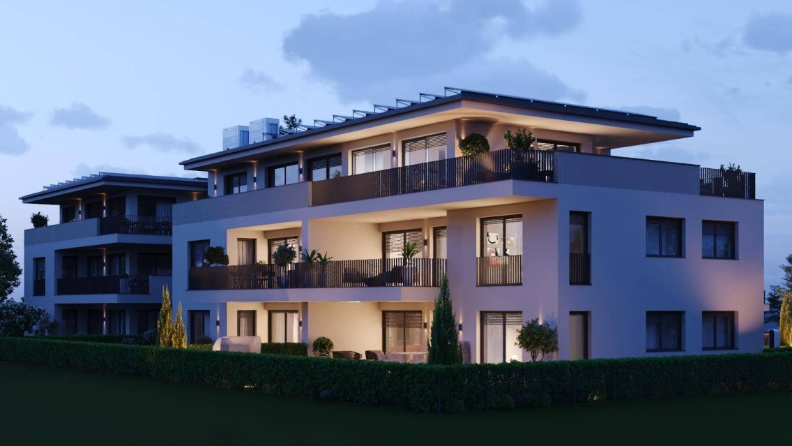 Die Anlage umfasst drei Gebäude mit insgesamt 16 Wohneinheiten. Die Erdgeschosswohnungen besitzen großzügige, eigene Gartenflächen im Eigentum, während die übrigen Einheiten mit ansprechenden Balkonen oder Terrassen ausgestattet sind.