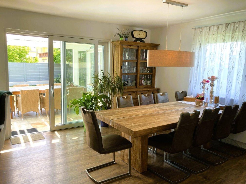 In diesem Traumhaus genießen Sie mit Ihrer Familie den Sommer am eigenen Pool!160 m² Wohnfläche auf 698 m² Grundstück, Pool, Sauna & Wellnessbereich, Kellerbar, überdachte Terrasse, Doppelgarage, CarportVerkauft wird ein sehr gepflegtes und absolut hochwertig ausgestattetes Einfamilienhaus (BJ. 1992) in sonniger und ruhiger Siedlungslage in Marchtrenk. Das helle und modern Einfamilienhaus (Holzriegelbau) ist hochwertig ausgestattet, hat eine gelungene Raumaufteilung und ist vollständig unterkellert.Neben dem offenen Wohn-Ess-Küchenbereich, mit direktem Zugang auf die überdachte Terrasse, stehen insgesamt vier Schlafzimmer, drei Bäder und drei WC - verteilt auf drei Etagen - zur Verfügung. Das gesamte Erdgeschoß (EG) wurde 2013 vollständig modernisiert und mit einer hochwertigen Einbauküche (Breitschopf) ausgestattet.Poolanlage & Wellness:Das Highlight ist der 7,5 m x 4 m große Pool mit Thermoabdeckung und Poolheizung mittels Luftwärmepumpe. Durch die Poolheizung wird die Badesaison im Frühling und Herbst wesentlich erweitert. Die sehr stimmige Pool-Landschaft mit Liegefläche, Sitzbereich und Dusche (Kalt- u. Warmwasser) fügt sich perfekt in die gepflegte Gartenanlage ein. Weiters bietet die überdachte Terrasse mit Seitenverglasung, sowie eine Sonnen-Markise, viel Platz für eine schöne Zeit. Auch für Entspannung in der kühleren Jahreszeit ist gesorgt. Ein Wellnessbereich mit Sauna (BJ. 2018) Infrarot- und Dampfkabine, sowie eine Kellerbar mit Relaxe-Zone stehen für den perfekten Feierabend bereit.Garage & Carport:Eine Doppelgarage (BJ. 2004) mit Montagegrube sowie ein Carport und eine Gartenhütte bieten ausreichend Platz um Autos, Fahrräder und Werkzeuge unterzubringen.Garten:Der Garten ist vollständig eingezäunt und die umlaufende hohe Gartenmauer sorgt für eine sehr entspannte Privatsphäre. Für die Gartenpflege steht ein Mähroboter zur Verfügung und Kräuter und Gemüse können in den zwei Hochbeeten angebaut werden.++++++++++++++++++++Raumaufteilung:Erdgeschoß ca. 95 m² (250 cm Raumhöhe) - vollständige Modernisierung 2013:Über einen einladenden Vorraum betreten Sie das Haus und gelangen in den offenen und großräumigen Wohn-, Ess-, Küchenbereich mit direktem Ausgang auf die überdachte Sonnenterrasse. Zusätzlich befindet sich im EG noch ein Schlafzimmer, ein Badezimmer, sowie ein separates WC.• Wohn-Essbereich