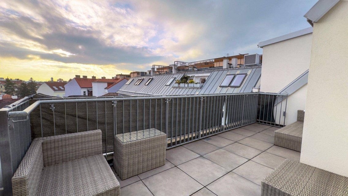 Entdecken Sie eine außergewöhnliche Immobilie in einer der begehrtesten Wohnlagen des 21. Bezirks! Diese hochwertige Eigentumswohnung, bezugsfertig seit 2022, verkörpert urbanes Wohnen auf höchstem Niveau. Auf circa 68m² eröffnet sich Ihnen ein durchdachtes Wohnkonzept mit Erstbezugscharakter, das modernste Ansprüche perfekt erfüllt.Die Dachgeschosswohnung besticht durch ihre herausragende Ausstattung und durchdachte Raumaufteilung. Ein absolutes Highlight ist die großzügige, etwa 13m² große Dachterrasse, die private Momente unter freiem Himmel zaubert und zum Entspannen einlädt. Der Echtholz-Eichenboden durchzieht den gesamten Wohnbereich und verleiht der Immobilie eine warme, einladende Atmosphäre.Modernste Haustechnologie definiert den Wohnkomfort dieser Immobilie neu. Eine Fußbodenheizung sorgt ganzjährig für angenehme Temperaturen, während drei integrierte Klimageräte zusätzliche Klimatisierungsmöglichkeiten bieten. Die dreifach verglasten Fenster mit außenliegendem Sonnenschutz garantieren optimale Dämmung, Energieeffizienz und Lärmschutz.Das stylische Badezimmer mit zwei Waschplätzen und einer Badewanne unterstreicht den Luxus dieser Wohnung. Die ruhige Innenhoflage verspricht höchsten Wohnkomfort und Privatsphäre. Ein Lift erschließt bequem alle Etagen und macht die Immobilie besonders barrierefrei.Ein weiteres Highlight: Der Stellplatz in der hauseigenen Tiefgarage mit einem Wert von circa 30.000 Euro ist im Kaufpreis bereits inkludiert. Mit drei Zimmern bietet die Wohnung idealen Raum für Paare oder kleine Familien, die Wert auf Qualität, Komfort und eine erstklassige Wohnlage legen.Lassen Sie sich von dieser Premium-Immobilie im 21. Bezirk verzaubern – Ihr neues Zuhause wartet!FinanzierungSollten Sie für den Kauf dieser Immobilie eine Finanzierung benötigen, stehen Ihnen gerne unsere Finanzierungsexperten der D&P Vermögensmanagement zur Seite.Nebenkosten3,5% Grunderwerbsteuer 1,1% Grundbuchseintragung 3,0 % Vermittlungsprovision zzgl. 20% MwSt. ca. 1,5% Vertragserrichtungskosten zzgl. 20% MwSt.Wir freuen uns, Ihnen diese Liegenschaft präsentieren zu dürfen.