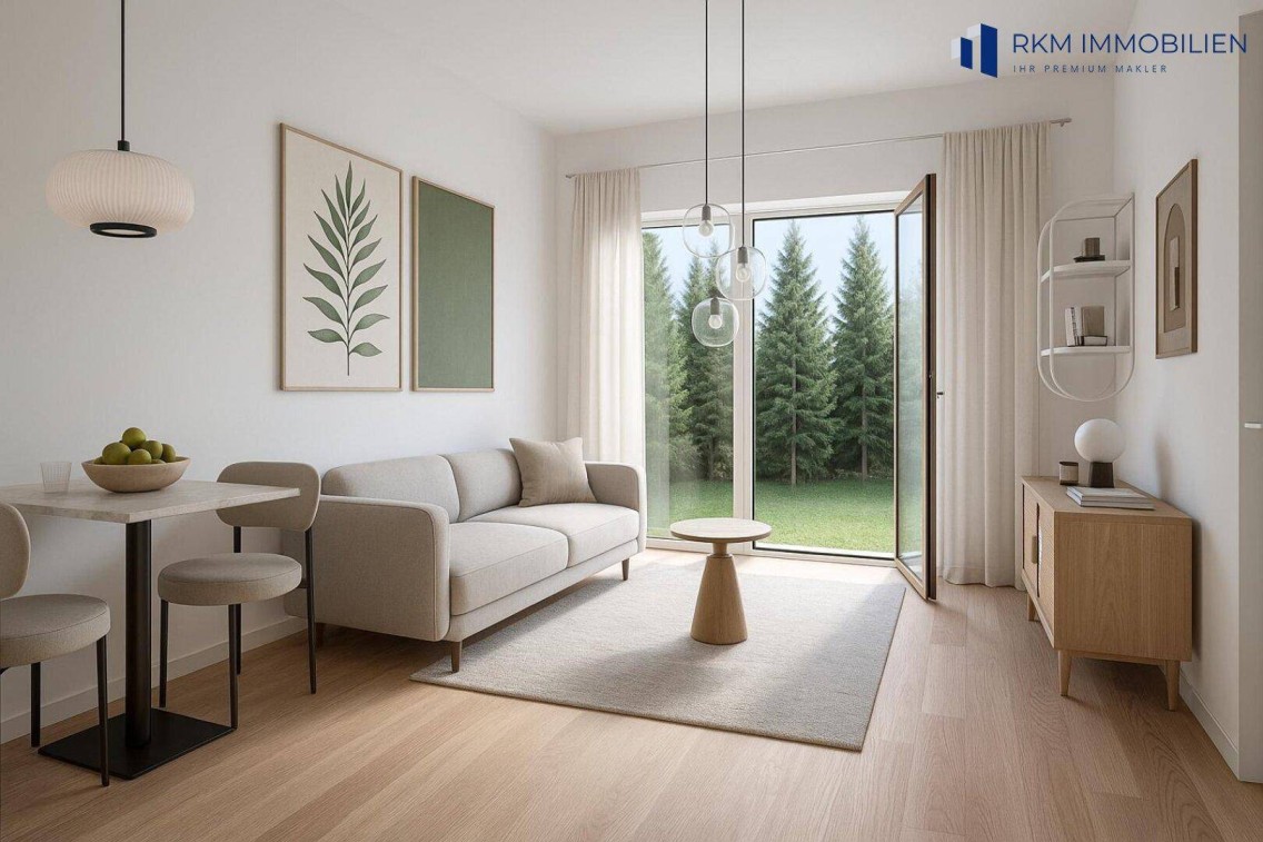 Diese charmante 2-Zimmer-Wohnung im Erdgeschoß bietet ca. 37 m' Wohnfläche und eine sonnige Terrasse mit ca. 10 m² - perfekt, um den Tag mit einer Tasse Kaffee im Freien zu beginnen.