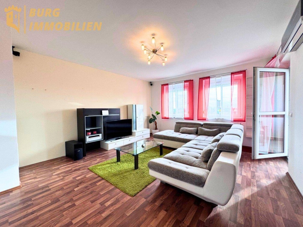 Helle 3-Zimmer-Wohnung im 2. und zugleich letzten Stock einer familienfreundlichen Wohnsiedlung. Zentral begehbar über einen Vorraum mit zwei seitlichen Fluren. Highlight ist das klimatisierte Wohnzimmer mit moderner Küchen-Nische, Essbereich und direktem Zugang zur Loggia. Ein überdachter Stellplatz direkt beim Hauseingang ist im Kaufpreis bereits inkludiert.KurzüberblickZimmer: 3 (Wohnzimmer + 2 Schlafzimmer)Außenfläche: Loggia (Zugang vom Wohnzimmer)Stockwerk: 2. / letztes Obergeschoss, ohne AufzugNebenräume: Abstellraum mit Waschmaschinenanschluss, KellerabteilSanitär: großes Bad mit Badewanne & Dusche, WC separatStellplatz: überdacht, im Kaufpreis inkludiert, direkt am EingangWohnumfeld: ruhige, familienfreundliche WohnsiedlungRaumaufteilung:Zentraler Vorraum als Empfang; davon zweigen links und rechts Flure ab – alle Räume zentral begehbar.Wohnzimmer (klimatisiert): hell, großzügig; moderne, geräumige Küche in Nische mit Platz für Sitzecke/Essbereich; Ausgang auf die Loggia.2 Schlafzimmer: freundlich, hell.Badezimmer: sehr groß, Badewanne, Dusche, Waschbecken.WC separat.Abstellraum mit WM-Anschluss.Kellerabteil für zusätzlichen Stauraum.Ausstattung & TechnikFenster: 2-fach verglaste KunststofffensterSonnenschutz/Insekten: manuelle Rollläden & FliegengitterBöden: Laminat in den Wohnräumen, Fliesen in Bad & WCHeizung: Gas-Zentralheizung (Wärmeabgabe über Radiatoren)Klimaanlage im Wohnzimmer – Kühlen & Heizen möglichKaminanschluss möglich (gemäß Eigentümerangabe; technische/behördliche Abklärung vorbehalten)Monatliche Kosten:Betriebskosten: 168,99 € Instandhaltung (Rücklage): 65,29 € Kapitaldienst: 153,77 € Verwaltung: 31,36 €