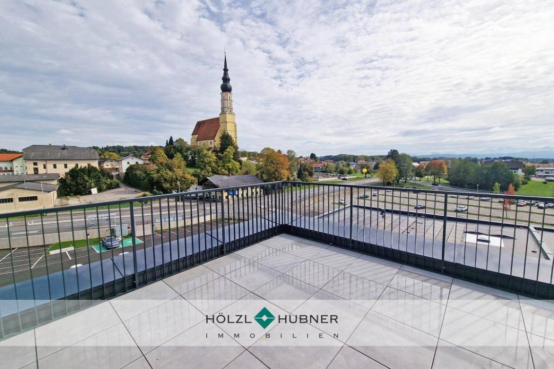 Diese Penthouse-Wohnung im Dachgeschoß bietet ein außergewöhnliches Wohngefühl mit 81 m² Terrasse und beeindruckendem Ausblick – inklusive direktem Blick auf die Kirche von Eggelsberg und Alpenfernsicht. Die Wohnfläche beträgt 104,24 m² und umfasst einen großzügigen Wohn-/Essbereich mit großen Fensterflächen sowie zwei Schlafzimmer, beide mit direktem Terrassenzugang. Ein Schrankraum/Ankleidebereich sorgt für zusätzlichen Komfort.