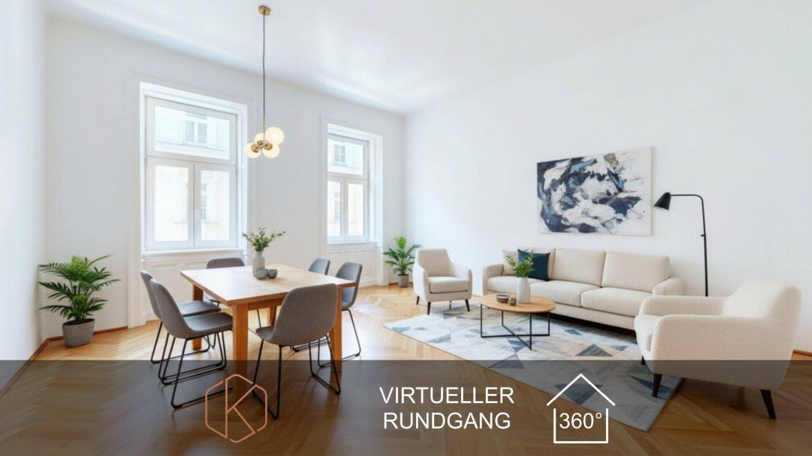 Zentral, klassisch und modern wohnen in einer Top-Lage!Die traumhaft schöne Wohnung befindet sich im 1. Obergeschoss eines typischen Altbaus mit Wiener Charme und liegt sehr zentral, mit allen Vorzügen des urbanen Lebens, nur einen Spaziergang vom Donaukanal entfernt. Vom geräumigen und einladenden Vorraum aus gelangt man zu den Zimmern, der Küche, zum großen Badezimmer und zum WC. Das Zentrum der Wohnung bilden zwei repräsentative, helle und großzügige Räume, die individuell als Wohn-, oder Schlafzimmer genutzt werden können. Der typische Altbaucharakter mit großzügigen Deckenhöhen, Fischgrät-Echtholzparkett sowie großen Flügeltüren sorgt für ein besonderes Wohnambiente. Die gesamte Ausstattung der Wohnung, genauso wie die neuwertige und moderne Küche, ist ausgesprochen hochwertig, gepflegt und punktet mit dem Reiz des Besonderen.Virtueller 3D Immobilien Rundgang: JETZT STARTENFakten | Highlights | AusstattungSanierter Altbau mit großzügigen Deckenhöhen2 ZimmerModerne KücheBadezimmer mit Badewanne, Waschmaschinenanschluss und FensterSeparate Toilette im Eingangsbereich Großer Vorraum/EingangsbereichFußbodenheizungHochwertige Parkettböden in den WohnräumenHochwertige FliesenRadabstellplatz im InnenhofKellerSehr gute öffentliche Anbindung und InfrastrukturRuhige LageTraumlage innere Stadt und DonaukanalWir weisen darauf hin, dass zwischen dem Vermittler und dem zu vermittelnden Dritten ein familiäres oder wirtschaftliches Naheverhältnis besteht.Der Vermittler ist als Doppelmakler tätig.Maklervereinbarung & gesetzliche HinweispflichtenWir ersuchen um Verständnis, dass wir bei Anfragen zur Objektadresse bzw. für einen Besichtigungstermin, aufgrund aktueller gesetzlicher Bestimmungen, Unterlagen erst dann zusenden können, wenn Sie uns vorab bestätigen, dass Sie unser sofortiges Tätigwerden wünschen und über Ihre Rücktrittsrechte und Nebenkosten aufgeklärt wurden. Sie bekommen nach Ihrer schriftlichen Anfrage mit vollständiger Angabe Ihres Namens, Anschrift und Telefonnummer ein E-Mail zugesandt, in der Sie diese Punkte bestätigen können.