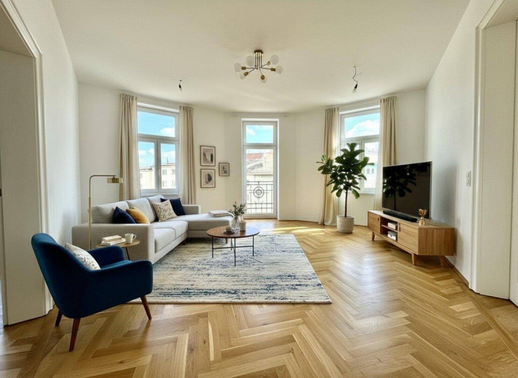 Erstbezug nach SanierungErleben Sie urbanes Wohnen auf höchstem Niveau in dieser vollständig sanierten 3-Zimmer-Altbauwohnung im begehrten 3. Bezirk! Die großzügige Wohnung mit ca. 82 m² Wohnfläche befindet sich im 3. Liftstock eines prachtvollen Jugendstilgebäudes und bietet mit ihrer hofseitigen Loggia eine private, grüne Oase mitten in der Stadt.Exklusive Highlights:Erstbezug nach hochwertiger Sanierung Edler Echtholz-Eichenparkett in Fischgrätmuster & stilvolle Holzflügeltüren Großzügige Raumhöhe von 3 m für ein einzigartiges Wohngefühl Fußbodenheizung in allen Räumen Lichtdurchflutete Wohnräume mit modernen Kunststofffenstern Separate Küche mit MarkengerätenPersonenaufzugEigenes Kellerabteil für zusätzlichen StauraumPerfekte Lage für urbanes Wohnen:Diese Immobilie besticht durch ihre zentrale, aber ruhige Lage. Direkt vor der Haustür befinden sich Bus- und Straßenbahnhaltestellen, die nächste U-Bahn-Station ist nur wenige Gehminuten entfernt. Geschäfte des täglichen Bedarfs, Ärzte, Apotheken, Schulen und Kindergärten sind bequem erreichbar. Für Shopping- und Freizeitaktivitäten bietet sich ein nahegelegenes Einkaufszentrum an. Dank der hervorragenden Verkehrsanbindung sind sowohl das Stadtzentrum als auch überregionale Ziele schnell erreichbar.Ihr neues Zuhause wartet auf Sie! Diese exklusive Altbauwohnung kombiniert historischen Charme mit modernem Wohnkomfort und bietet alles, was das Herz begehrt. Lassen Sie sich von dieser außergewöhnlichen Immobilie begeistern und vereinbaren Sie noch heute Ihren persönlichen Besichtigungstermin!Kaufpreis: 539.000,00 EURProvision: 3% zzgl. SteuerFazit:Profitieren Sie von einer einzigartigen Kombination aus Tradition und Moderne und sichern Sie sich Ihr neues Zuhause in einer der begehrtesten Lagen Wiens.Für Fragen bzw. Besichtigungen steht Ihnen Herr Julian Kukacka gerne unter [Telefonnummer entfernt] zur Verfügung.*Die verwendeten Fotos weisen teilweise KI-generierte Inhalte auf.*Wir weisen darauf hin, dass zwischen dem Vermittler und dem zu vermittelnden Dritten ein familiäres oder wirtschaftliches Naheverhältnis besteht.Der Vermittler ist als Doppelmakler tätig.