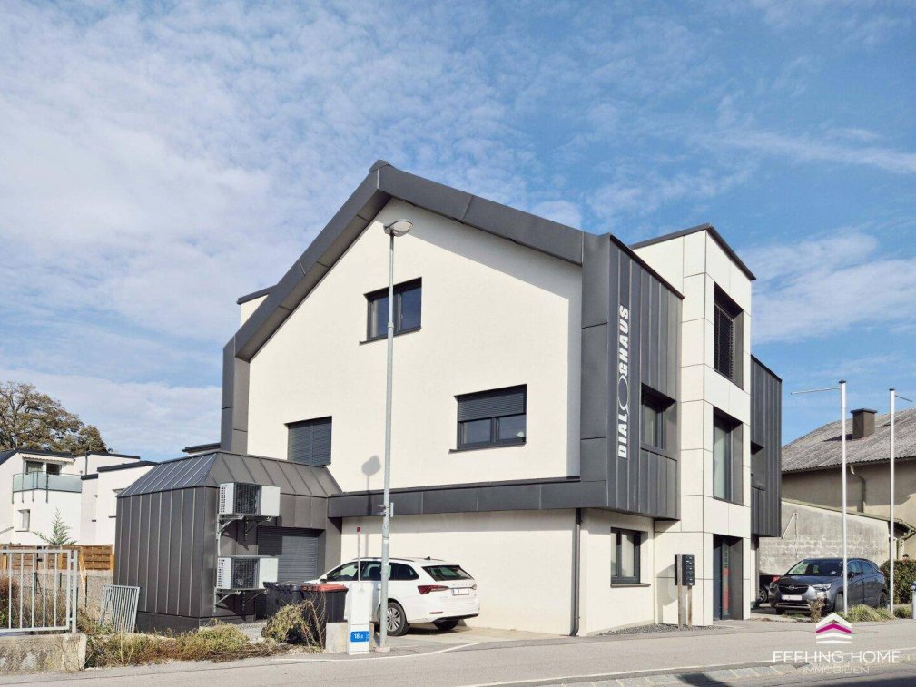 Erdgeschoss – Funktional & praktisch!Das Erdgeschoss mit ca. 65,1 m² Nutzfläche bietet Stauraum-Räumlichkeiten, ein Badezimmer sowie eine Waschküche. Der barrierefreie Zugang und die Anbindung an den modernen Lastenaufzug garantieren komfortables und behindertengerechtes Arbeiten.1. Obergeschoss – Großzügigkeit trifft Komfort!Im ersten Obergeschoss erwartet Sie ein durchdachtes Raumkonzept mit mehreren lichtdurchfluteten Büroräumen. Eine große Küche auch als Besprechungsraum ideal, ein praktischer Abstellraum sowie ein WC vervollständigen diese Etage.Die angenehme Raumhöhe und die energieeffiziente Fußbodenheizung sorgen für ein perfektes Arbeitsklima das ganze Jahr über. Der barrierefreie Zugang per Lastenaufzug macht dieses Geschoss besonders attraktiv.Modernes Dachgeschoss mit vielseitigem Potenzial! Das stilvolle Dachgeschoss besticht durch seine hochwertige Ausstattung. Große, 3-fach verglaste Velux-Dachfenster mit elektrischer Fernbedienung und Regensensor schaffen ein besonderes Wohlfühlambiente und sorgen das ganze Jahr über für angenehme Lichtverhältnisse.Gemeinsam mit dem ersten Obergeschoss bietet die Fläche großzügige 221,47 m² und damit vielfältige Nutzungsmöglichkeiten. Neben einer Küche, einem WC und mehreren flexibel gestaltbaren Büroräumen überzeugt das Dachgeschoss vor allem durch sein attraktives Potenzial zum Umbau in eine moderne Wohnung – ideal für alle, die Arbeiten und Wohnen elegant miteinander verbinden möchten.Die Vorbereitung für eine Klimaanlage ist bereits vorhanden – perfekt für höchsten Komfort, auch an heißen Sommertagen!AUSSTATTUNG & HIGHLIGHTS3 Stockwerke ohne Keller mit Lastenaufzug bis zur 1. OG (behindertengerecht)6 PKW-Stellplätze, davon 4 Carport-Stellplätze mit Wallbox-Anschluss (1x Charger, 1x Vorbereitung)Photovoltaikanlage 9-10 kW mit Stromspeicher (Südausrichtung)Vollausgestattetes Badezimmer mit integriertem WC Wärmepumpe mit Fußbodenheizung – energieeffizient & nachhaltigVelux-Fenster mit Fernbedienung & Regensensor im DGSchallschutzglas für ruhiges Arbeiten oder Wohnen trotz StraßenlageGrößtenteils elektrische Beschattung (Zip-Außenbeschattung, Rollläden, Raffstore)LAN-Anschluss in jedem BüroraumLED-Band im Handlauf des StiegenhausesAlarmsicherung für maximale SicherheitKlimaanlagen-Vorbereitung im Dachgeschoss