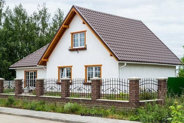 Ein freistehendes Einfamilienhaus, einstöckig mit Keller und ausgebautem Dachgeschoss, inklusive Nebengebäude und Garage, Baujahr 1957. Das Nebengebäude wurde 1960 errichtet, die Garage folgte 1966. Die Raumaufteilung umfasst im Keller einen Flur, zwei Kellerräume und eine Waschküche; im Erdgeschoss einen Flur, ein WC, eine Küche, zwei Zimmer mit insgesamt 48,98 m²; im ausgebauten Dachgeschoss einen Flur, ein WC, drei Zimmer mit 49,93 m² und einem Balkon. Der Bau- und Erhaltungszustand des Hauses wird als gut bis sehr gut beschrieben.