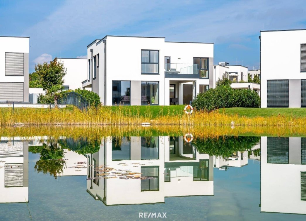 In the idyllic community of Oberwaltersdorf, Lower Austria, this exquisite home awaits you on Lake Trappenfeld. The property for sale impresses with a generous living space of approx. 180 m², distributed over four rooms. The plot covers approx. 598 m² – ideal for open space and relaxation. The purchase price for this newly built home (completed in 2024) is € 1,490,000.