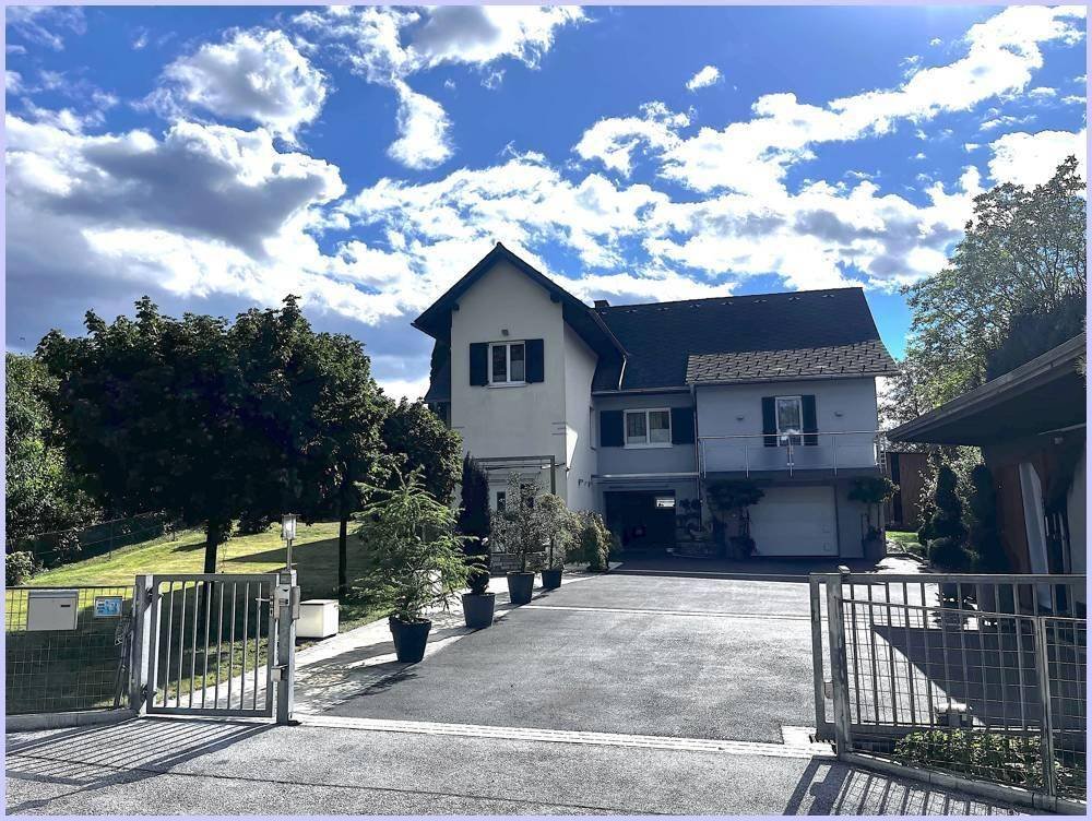 Die großzügige Einfahrt zum Haus ist aufwendig und schön asphaltiert und gepflastert und bietet Platz für mehrere Fahrzeuge.