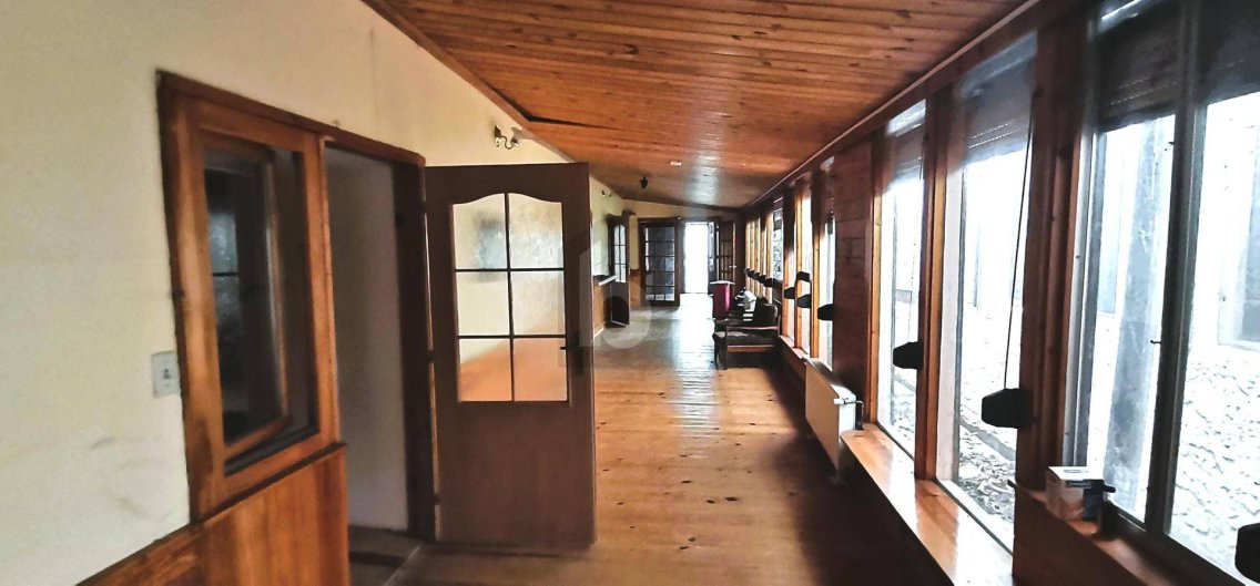 In diesem traditionellen Streckhaus mit mehreren Einheiten verläuft eine verglaste Galerie parallel zum Gebäude und verbindet die einzelnen Bereiche. Mit der Zufahrt/Zugang von zwei Straßen aus, ließe sich auch ein Arbeitsbereich komplett vom Wohnbereich trennen. Die Halle mit Indoor-Pool und Barbereich verleiht dem Objekt eine besondere Note.
