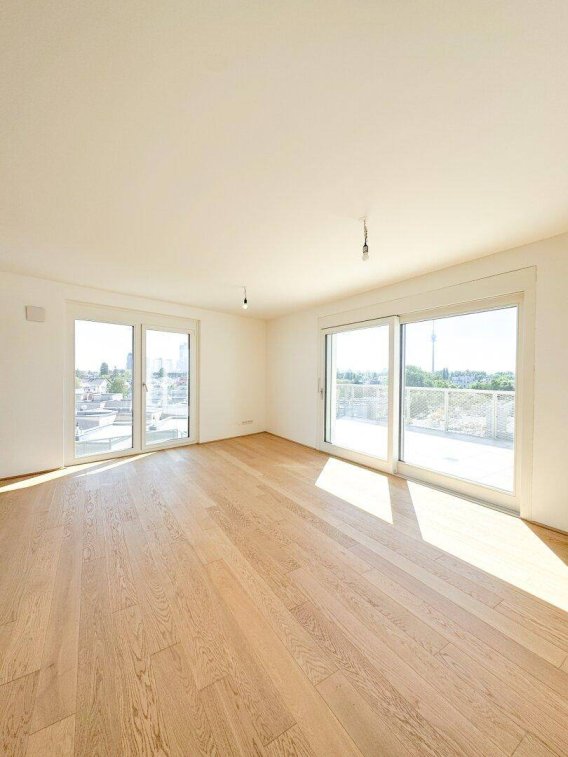 Luxuswohnung mit Dachgarten, Terrasse und TraumblickIn einem modernen Neubau im 21. Wiener Gemeindebezirk erwartet Sie eine exklusive Eigentumswohnung, die durch Großzügigkeit, Lichtfülle und außergewöhnliche Freiflächen besticht. Auf rund 100 m² Wohnfläche kombiniert dieses Objekt zeitgemäßen Wohnkomfort mit hochwertiger Ausstattung und einer energieeffizienten Bauweise.Das durchdachte Raumkonzept verteilt sich auf vier Zimmer und schafft damit viel Platz für individuelle Wohnideen – ideal für Paare, Familien oder anspruchsvolle Singles. Zwei elegante Badezimmer sorgen für zusätzlichen Komfort, während die offene Wohnküche mit großen Fensterflächen ein einladendes Zentrum für gesellige Stunden bildet.Ein Highlight dieser Wohnung sind die außergewöhnlich großen Freiflächen: eine rund 22 m² große Terrasse, zwei Balkone mit insgesamt über 31 m² sowie ein privater Dachgarten mit ca. 85 m². Diese einzigartigen Außenbereiche bieten zahlreiche Möglichkeiten – ob als grüne Oase, Sonnendeck oder stilvolle Outdoor-Lounge mit Blick über die Stadt. EckdatenWohnfläche: ca. 100,02 m²Dachgarten: ca. 85,44 m²Terrasse: ca. 22,20 m²Balkone: ca. 31,03 m²Zimmer: 4Bäder: 2Etage: 4. OGBaujahr: 2024, ErstbezugHeizung: Fernwärme / FußbodenheizungEnergieausweis: HWB B (29 kWh/m²a), fGEE A (0,74) LageDie Liegenschaft befindet sich in einem attraktiven Neubaugebiet in Floridsdorf, das durch eine hervorragende Infrastruktur überzeugt.Öffentliche Anbindung: U-Bahn, Straßenbahn und Bus sind in wenigen Gehminuten erreichbar. Auch der Bahnhof Floridsdorf bietet eine perfekte Anbindung ins Stadtzentrum und Umland.Nahversorgung: Supermarkt, Bäckerei und Einkaufszentrum in unmittelbarer Nähe.Familienfreundlich: Kindergarten, Schule und höhere Lehranstalten befinden sich im direkten Umfeld.Freizeit & Gesundheit: Parks, Radwege sowie Ärzte und Apotheken sind schnell erreichbar.Die Lage verbindet urbanes Wohnen mit hoher Lebensqualität in ruhiger Umgebung – perfekt für alle, die Stadt und Natur gleichermaßen genießen möchten. Kaufpreis & KostenKaufpreis: 961.095,00 €