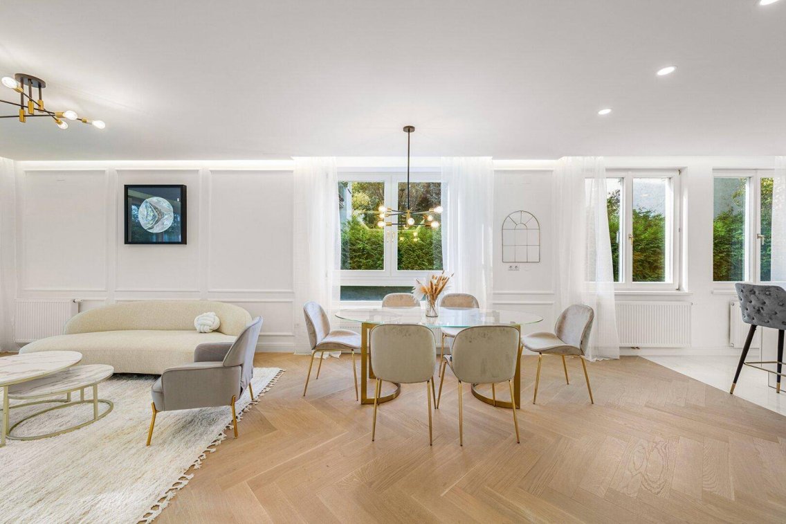 Inmitten der begehrten Grünruhelage des 19. Bezirks offenbart sich eine wahre Wohnrarität – eine stilvoll konzipierte Gartenresidenz, die anspruchsvolle Architektur mit exklusivem Komfort vereint. Eingebettet in eine gepflegte, ruhige Wohnanlage, erleben Sie hier die perfekte Harmonie von Natur, Design und urbanem Lebensstil.Wohnqualität auf höchstem Niveau!Schon beim Betreten eröffnet sich ein Gefühl von Weite und Eleganz. Die großzügige Raumaufteilung, durchdacht bis ins kleinste Detail, vermittelt den Eindruck eines eigenständigen Hauses innerhalb eines Hauses. Herzstück dieser außergewöhnlichen Immobilie ist der lichtdurchflutete Wohnbereich mit direktem Zugang zur rund 300 m² großen Gartenlandschaft – ein Ort der Ruhe und des Rückzugs, eingebettet in sattes Grün.Eine hochwertige Designerküche in offenem Loft-Stil bildet den Mittelpunkt des Wohnens: ideal für Genussmenschen, Gastgeber und Ästheten. Großzügige Fensterflächen mit Dreifachverglasung eröffnen faszinierende Blickachsen in die Natur und lassen Licht und Lebensfreude einziehen.Wellness und Entspannung – privat und exklusiv!Ein besonderes Highlight dieser Immobilie ist der bereits installierte Indoor-Pool im Untergeschoss – mit direktem Ausgang in den Garten. Begleitet wird der private Spa-Bereich von einer eleganten Sauna mit 9 m², die zu jeder Jahreszeit für Erholung sorgt. Hier verschwimmen Innen- und Außenwelt auf sinnliche Weise miteinander – ein Rückzugsort, der Luxus neu definiert.Die beiden Badezimmer sind mit edlem Carrara-Marmor veredelt und verfügen jeweils über exklusive Jacuzzi-Badewannen sowie hochwertige Designerarmaturen – eine Symbiose aus Funktionalität und Ästhetik.Stilvoll. Smart. Zeitlos!In sämtlichen Wohnräumen liegt ein hochwertiger Fischgrät - Parkettboden, der klassisches Handwerk mit modernem Wohnen verbindet. Maßgefertigte Tischlertüren, ein innovatives Smart Home-System und feinste Materialien runden den Anspruch an Qualität und Eleganz ab. Der 25 m² große Terrassenbereich lädt zum Verweilen ein und erweitert den Wohnraum in die Natur hinein.Diese Residenz ist mehr als nur eine Immobilie – sie ist ein Statement. Für Menschen mit Sinn für Ästhetik, Qualität und das Besondere. Für Familien, die Privatsphäre schätzen. Für Genießer, die Wohnen als Erlebnis verstehen.Erleben Sie urbanen Luxus mit dem Charme eines privaten Refugiums – im Herzen von Döbling.Highlights auf einen Blick:300 m² Privatgarten mit direktem Zugang25 m² sonnige Terrasse mit GrünblickIndoor-Pool & 9 m² SaunaZwei luxuriöse Badezimmer mit Carrara-Marmor & JacuzziDesignerküche in offener AusführungHochwertiger Fischgrät-ParkettDreifachverglaste Fenster & TischlertürenSmart Home-SystemRuhige, gepflegte Wohnanlage in Bestlage des 19. BezirksGerne präsentieren wir Ihnen diese außergewöhnliche Immobilie bei einem persönlichen Besichtigungstermin.Willkommen zu Hause. Willkommen in Döbling.Der Vermittler ist als Doppelmakler tätig.