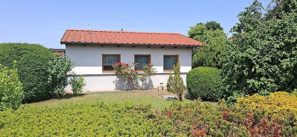 Die derzeit 50 m² Wohnfläche bieten eine offene Küche mit Einbauküche, ein Wohnzimmer, zwei Schlafzimmer, Bad und WC. Eine 14 m² große Terrasse erweitert den Wohnraum nach außen. Das Haus ist barrierefrei und rollstuhlgerecht gestaltet, verfügt über Parkettböden und ist in Massivbauweise errichtet. Zum Anwesen gehört eine Garage. Dank vorhandener Anschlüsse, einschließlich Gas, ist eine kostengünstige Erweiterung der Wohnfläche problemlos möglich. Die Infrastruktur mit Geschäften, Kino und Gastronomie sowie die Nähe zu Rad- und Naturwegen bieten hohe Lebensqualität. Mit dem Bus 521 (6 Gehminuten entfernt) erreicht man in 15 Minuten die Schnellbahnstation Helmahof und von dort in 35 Minuten Wien Mitte.
