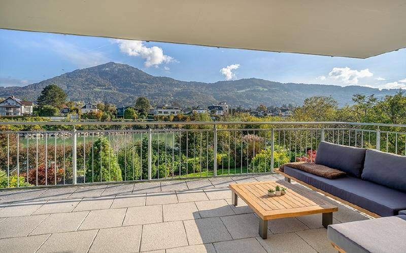 In der bis in den Giebel offenen Living Area mit bis zu 3,25 m Raumhöhe unterm Dach umfängt Sie lichterfüllte Leichtigkeit, dennoch sind alle Fensterelemente einzeln mit Rolläden beschattbar. Bodentiefe XL-Panoramafenster zwischen Küche mit angrenzendem Wirtschaftsraum, Ess- und Loungezone verzaubern mit freier Sicht zur Festung und in die Berge. Die traumhafte Salzach-Terrasse mit Gaisberg-Kulisse ist nicht nur beim Brunchen mit Freunden und Familie der Star der Immobilie. Ideal zum Sonnenbaden ist die blickgeschützte Sonnenterrasse auf der anderen Seite dieser Wohnebene. Lift bzw. Treppe bringen Sie in die Schlafebene darunter.