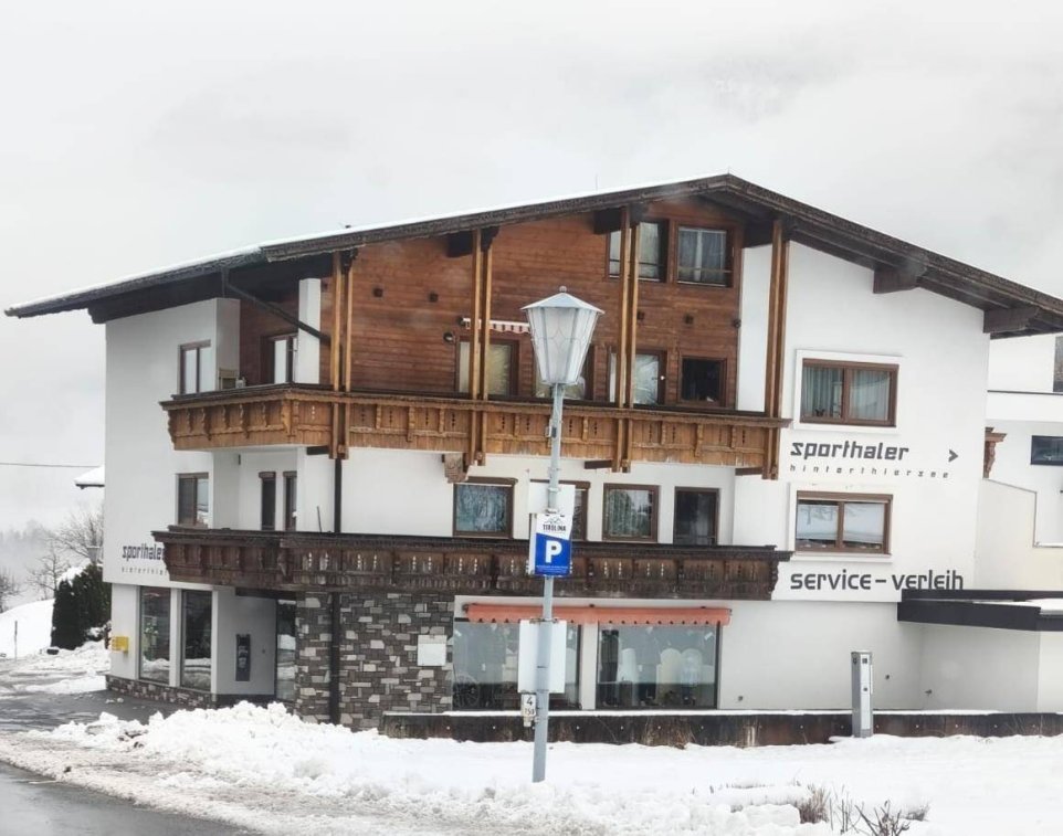 Von dem großen Balkon im 2. Stock mit 21,7 m² hat man eine großartige Aussicht auf den Ort und in der Ferne auf den Zahmen- und Wilden Kaiser.