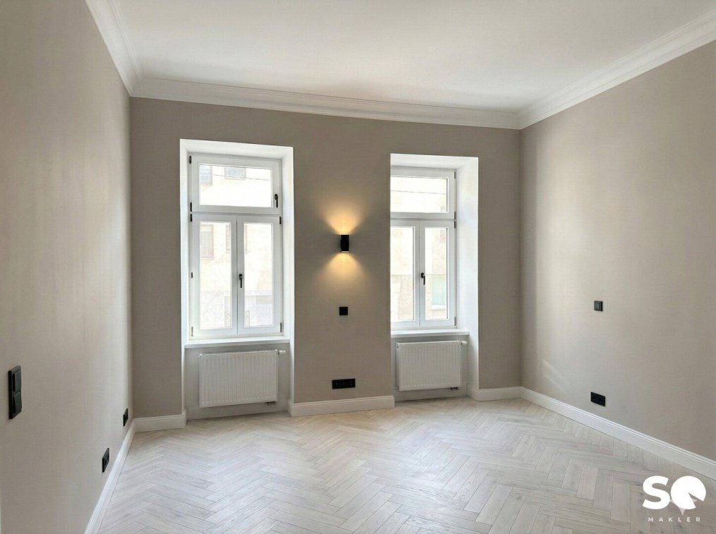 In einer ruhigen Wohnlage des 16. Bezirks, befindet sich diese stilvoll sanierte Altbauwohnung mit rund 40,5 m² Wohnfläche im Hochparterre (Niveau 1. OG) eines schönen und gepflegten Hauses. Der praktische Grundriss mit zwei gut geschnittenen Zimmern, einer lichten Raumhöhe von ca. 3,3 m und die großen Fenster, bewirken ein angenehmes Raumgefühl, dass durch hochwertige Ausstattung und das zeitloses Design abgerundet wird. Zusätzlich verfügt die Wohnung über einen praktischen Stauraum oberhalb des Badezimmers. Dieser Bereich umfasst etwa 2,8 m² bei einer Tiefe von rund 1 m, einer Breite von ca. 2,8 m und einer Höhe von knapp 1 m. Er eignet sich ideal zur Aufbewahrung oder zum Einbau eines maßgefertigten Schranks. Der geräumige Vorraum bietet Platz für einen großzügigen Wandschrank, wo neben allen Habseligkeiten auch die Waschmaschine und die Therme ihren Platz finden.Die Wohnung wird derzeit umfassend modernisiert und präsentiert sich ab 1. Jänner 2026 im Erstbezug - Eine perfekte Kombination aus historischem Altbauflair, zeitgemäßem Wohnkomfort und stylishen Farbkonzepten mit Wandleuchten, Stuckatur und hochwertigen Materialien. Das großzügige Wohnzimmer bildet das Herzstück der Wohnung. Besonderes Augenmerk gilt auch dem Schlafbereich: Dieser verfügt über ein exklusives Bad en Suite, das direkt vom Schlafzimmer aus zugänglich ist, sowie einen französischen Balkon mit Weitblick in den ruhigen Innenhof. TV-Kabel sind im Wohn- und Schlafzimmer vorbereitet.Ausstattungs-Highlights:Vollständig erneuerte Elektrik und SicherheitstüreBad mit Keramiken von Villeroy & Boch und Armaturen von HansgroheGroßformatige FeinsteinzeugfliesenEdles Eichenparkett im FischgrätmusterStylisches Wohnkonzept mit hochwertigen MaterialienEckdaten:Wohnfläche: ca. 40,5 m²Zimmer: 2Baujahr: ca. 1900 – Altbau, Erstbezug nach SanierungHeizung: WOLF Gas-Etagenheizung mit RadiatorenBöden: Fischgrät-Parkett und moderne FliesenbödenFenster: Isolier-Kunststofffenster mit DoppelverglasungSehr gute öffentliche AnbindungKaufpreis: € 229.000Diese Wohnung vereint urbanen Lebensstil, hochwertige Materialien und beste Infrastruktur – ideal für Singles, Paare oder Anleger, die das Besondere suchen.Kontaktdaten:Bitte kontaktieren Sie Herrn Adam Brandis direkt über das Kontaktformular oder unter [Telefonnummer entfernt] sowie [E-Mail-Adresse entfernt] für weitere Fragen und Besichtigungen.Wir freuen uns auf Ihre Anfrage!