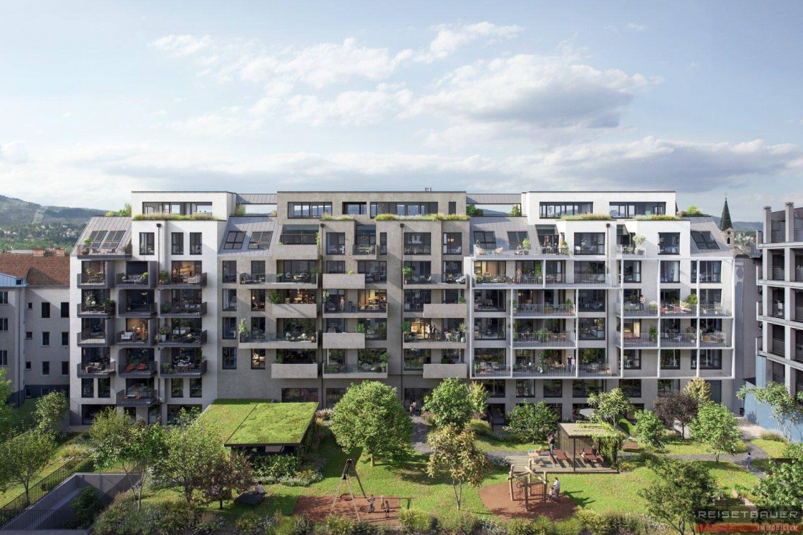 LoveYouGoethe. Ein neuer Ort mitten in Linz, der Stadtliebe und Naturverbundenheit eint. In ihrem Inneren warten neben modernsten Wohnungen auch ein exklusiv für die Bewohnerinnen und Bewohner nutzbarer Co-Working-Space sowie ein begrünter Innenhof. Diese Wohnanlage ist ein zukunftsweisendes Beispiel für modernes Wohnen und Arbeiten in Linz, ohne dabei auf wohltuende Natur verzichten zu müssen. Verschiedene Wohnkonzepte bieten jedem Lebensmodell eine Lösung. Große Fenster sowie Balkone lassen viel Licht und Luft ins Innere. Der Baustart ist bereits erfolgt.