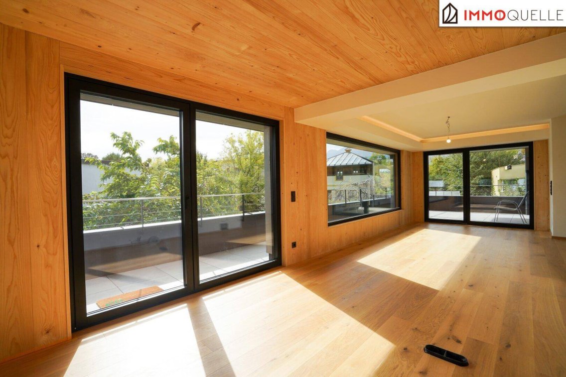 Zwischen Stadtflair und AlpenblickLebensfreude am Almkanal - Panoramawohnung mit einzigartigem AusblickWillkommen in einer Wohnwelt, in der Natur, Weitblick und modernes Design ein harmonisches Ganzes bilden. Inmitten der begehrten Salzburger Stadtteile Riedenburg und Leopoldskron erwartet Sie diese exklusive Terrassenwohnung als stilvoller Rückzugsort mit Panoramablick auf die Festung Hohensalzburg, den Untersberg und den Gaisberg.Schon beim Betreten dieser rund 103 m² großen Wohnung spürt man die durchdachte Planung - mit Liebe zum Detail und Blick fürs Ganze. Warme Eichendielen, elegante Fliesen in Sandtönen und massive Alu-Holz-Fenster in mattem Schwarz schaffen ein Ambiente zwischen Natürlichkeit und urbanem Design. Unterstützt durch versteckte Lichtbänder in den weißen Decken und einen hochwertigen Kaminofen, entsteht ein Gefühl von Geborgenheit - bei jedem Wetter und zu jeder Jahreszeit.Das Herzstück der Wohnung ist der großzügige, lichtdurchflutete Wohn-, Ess- und Kochbereich mit insgesamt rund 45 m² - offen gestaltet, stilvoll akzentuiert durch eine Panoramaverglasung. Mit nur einem Schritt gelangen Sie auf die nach Süden ausgerichtete Terrasse mit 23,36 m² Fläche - ein erweiterter Lebensraum für Frühstück in der Morgensonne, gesellige Brunchs oder goldene Abendstunden. Selbst an Wintertagen sorgt die durchdachte Lichtführung im Innenraum für Helligkeit und Atmosphäre - ein Ort, der belebt und zugleich das Gefühl von Zuhause vermittelt.Insgesamt bietet die Wohnung drei Schlafzimmer - flexibel nutzbar als Kinderzimmer, Büro oder Gästebereich Besonders erwähnenswert ist das Master-Bedroom mit direktem Terrassenzugang sowie einem eigenen Zugang zum eleganten Badezimmer. Dieses ist mit Tageslicht durch zwei Fenster, einer Walk-In Dusche und einer Badewanne ausgestattet - Ihre persönliche Entspannungsoase.Ergänzt wird das Raumangebot durch einen Abstellraum, ein separates Gäste-WC sowie zwei komfortable PKW-Stellplätze : Carport und Garage. Die energieeffiziente Gastherme sorgt gemeinsam mit der Fußbodenheizung für ein angenehmes Raumklima - bei gleichzeitig niedrigen Betriebskosten. Besonders nachhaltig gedacht: Die Genehmigungen für eine Photovoltaikanlage auf dem Terrassendach sowie eine E-Ladestation liegen bereits vor - ein klares Plus für die Zukunft.Diese Wohnung ist ein Erstbezug, der mehr als nur neue Räume bietet: Sie schenkt Raum für Leben, Ausblick und Ruhe - mitten in Salzburg.Interesse geweckt?Vereinbaren Sie noch heute einen unverbindlichen Besichtigungstermin. Wir freuen uns auf Ihre Anfrage!-----------Adrian SchusterKonzessionierter ImmobilienmaklerTelefon: [Telefonnummer entfernt]
