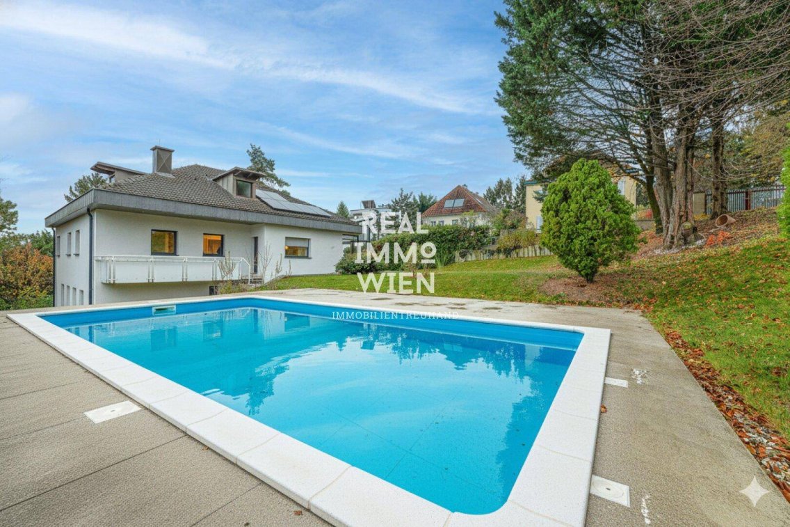 Neubauvilla im 23. BezirkWillkommen in dieser beeindruckenden Neubauvilla, die Ihnen modernen Wohnkomfort und eine Vielzahl an Annehmlichkeiten bietet. Die Villa erstreckt sich über großzügige 6 Zimmer und ist perfekt für Familien oder als repräsentativer Wohnsitz geeignet.Wintergarten: Genießen Sie sonnige Tage und laue Abende in Ihrem eigenen Wintergarten, der viel Licht und eine angenehme Atmosphäre bietet.Swimmingpool: Der private Swimmingpool lädt an heißen Sommertagen zum Entspannen und Schwimmen ein.Sauna: Eine eigene Sauna sorgt für Wellness und Entspannung in den eigenen vier Wänden.Großer Wohnsalon: Der großzügige Wohnsalon mit offenem Kamin und Zugang zum Essbereich ist der ideale Ort für gesellige Abende mit Familie und Freunden.Zwei Bäder: Die Villa verfügt über zwei moderne Bäder, die sowohl Komfort als auch Funktionalität bieten.Das Dachgeschoss bietet ein Blick über Wien Die Wohnküche hat eine Speisekammer angeschlossen.