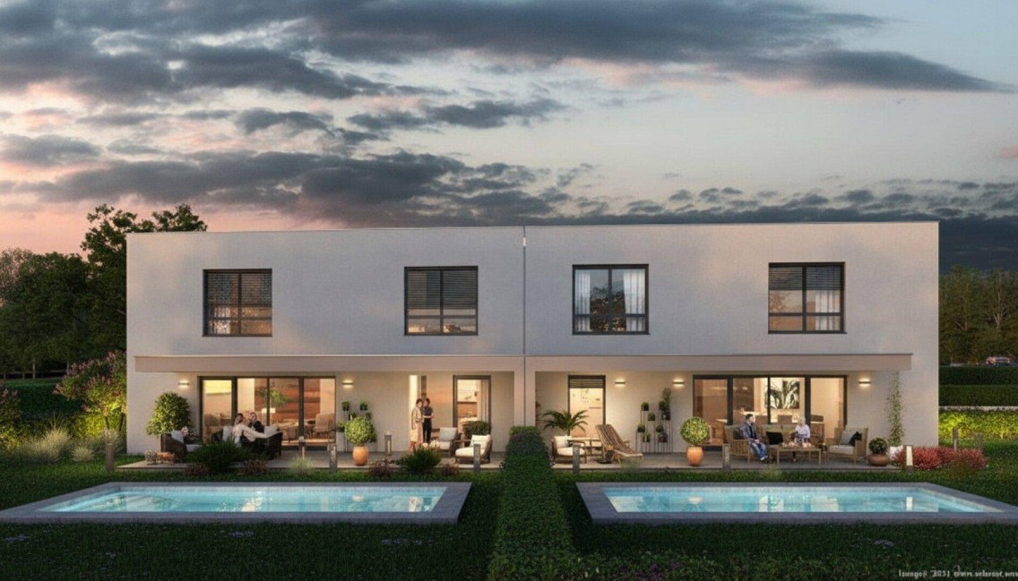 Am Eibenweg in Pasching-Thurnharting entsteht ein attraktives Neubauprojekt mit 8 modernen Doppelhaushälften, die in energieeffizienter Bauweise (HWB 40) realisiert werden. Mit rund 122 m² Wohnfläche bieten die Häuser ein durchdachtes Raumkonzept und schaffen ideale Voraussetzungen für komfortables Familienleben.Die sonnige Südausrichtung, private Eigengärten sowie großzügige Raumhöhen von mindestens 2,60 m im Erd- und Obergeschoss sorgen für ein besonders helles und offenes Wohngefühl. Die Gärten erweitern den Wohnraum ins Freie und bieten viel Platz zum Entspannen. Auf Wunsch können in den Eigengärten der Doppelhaushälften Swimmingpools als Sonderausstattung umgesetzt werden – für zusätzlichen Wohn- und Freizeitkomfort im eigenen Zuhause.Highlights im Überblick:ca. 122 m² Wohnfläche auf Erd- und Obergeschossvoll unterkellert – viel StauraumMassivbauweise mit Ziegel und Stahlbeton, auch Innenwände in ZiegelLuft-Wärmepumpe mit Fußbodenheizung für effiziente Wärmeenergieeffizienter Bauweise (HWB 40) -> niedrige BetriebskostenHaus Typ A mit Garage + Stellplatz | Haus Typ B mit Carport + Stellplatzwahlweise belags- oder schlüsselfertige Ausführung (Aufzahlung schlüsselfertig: € 47.950,–)parifizierte Ausführung – jede Einheit im Wohnungseigentumförderfähige Bauweise laut Richtlinien des Landes OÖtreuhändige Abwicklung gemäß Bauträgervertragsgesetz (BTVG)Zusätzliche Informationen:Raumhöhe: mind. 2,60 m (EG & OG), 2,40 m (KG)Anschlusskosten für Kanal, Wasser, Strom, Straßenaufschließung: € 12.000,– geschätzt und nicht im Kaufpreis inkludiertWohnen mit Qualität und Weitblick – sichern Sie sich jetzt Ihre Traumhaushälfte!Weitere Unterlagen wie Grundrisspläne, Ausstattungsbeschreibung oder Energieausweis senden wir Ihnen gerne auf Anfrage zu.Finanzierung: