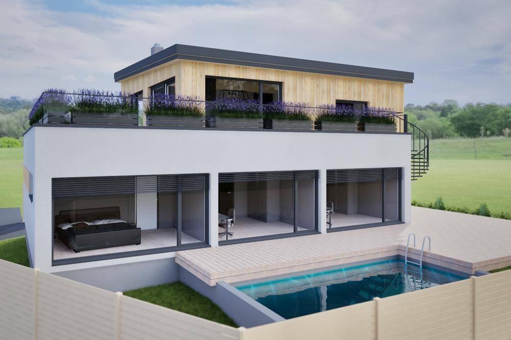 Auf dem sonnigen, 617 m² großen Grundstück befindet sich derzeit eine Bestandsimmobilie. Hier wird eine moderne Einfamilien-Villa mit zwei großzügigen Terrassen gemäß vorliegender Neubauplanung realisiert.