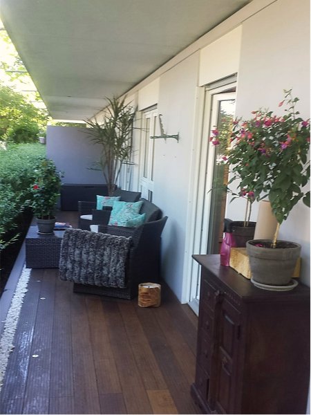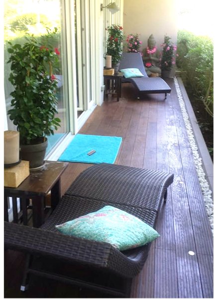 Alle Zimmer gehen zur Terrasse, die in L Form nach S/W um die Terrasse geht