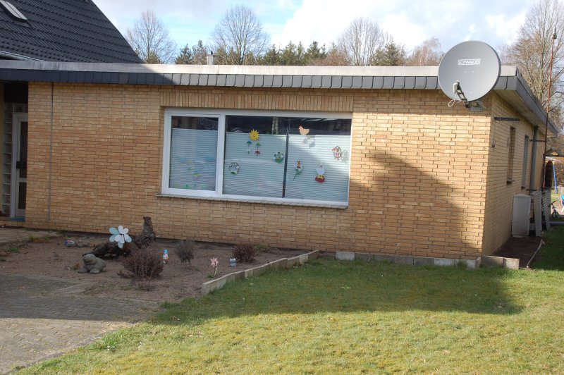 Der Grundriss sieht zwei Eingänge ins ebenerdige Haus vor, einer ist davon rollstuhlgerecht. Die mittlere Ausstattung des Hauses mit Küche, Bad, Gäste-WC, Wohnzimmer, Schlafzimmer und 2 Kinderzimmern, Gasbrennwert-Heizung und doppeltverglasten Fenstern. ermöglichen ein unbeschwertes und glückliches Wohnen.