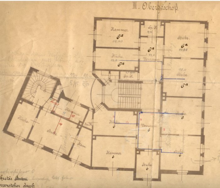 DIE ZWEITE TREPPENHAUS ENTFERNT UND DIE KLEINE WOHNUN MIT DER ANSCHLIESSENDER WOHNUNG VERBUNDEN.