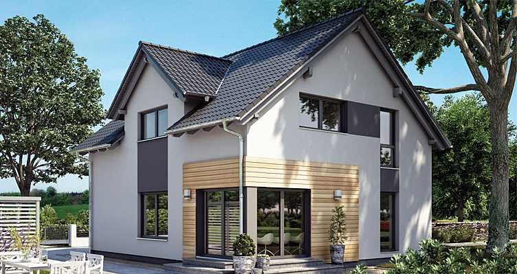 Der helle, großzügig gestaltete Wohn- und Essbereich mit der anschließenden offenen Küche bildet das kommunikative Zentrum und den Familientreffpunkt im Architektenhaus Sorrento. Dieses bietet Familien eine offene und großzügige Innenarchitektur. Große Fenstertüren verbinden den Innenbereich mit der Terrasse und sorgen für Licht und Helligkeit. Im Obergeschoss ist viel Platz für ein Elternschlafzimmer, ein hochwertig ausgestattetes Familienbad und drei behagliche Kinderzimmer, die aber auch individuell als Arbeits-, Hobby- oder Gästezimmer nutzbar sind. Durch die Kniestockhöhe von 1,30 m und den Quergiebel wird die vorhandene Grundfläche mit diesem Fertighaus-Konzept optimal genutzt.