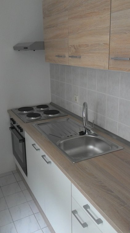 Im Kaufpreis enthalten ist eine Einbauküche mit E-Herd, Kühlschrank, Spüle.