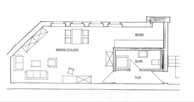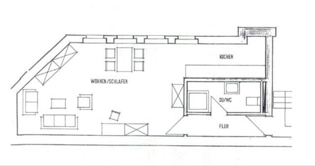 Der Wohn- und Schlafraum ist mit Laminat ausgestattet und bietet genügend Platz, damit Sie sich gemütlich einrichten und wohlfühlen können.