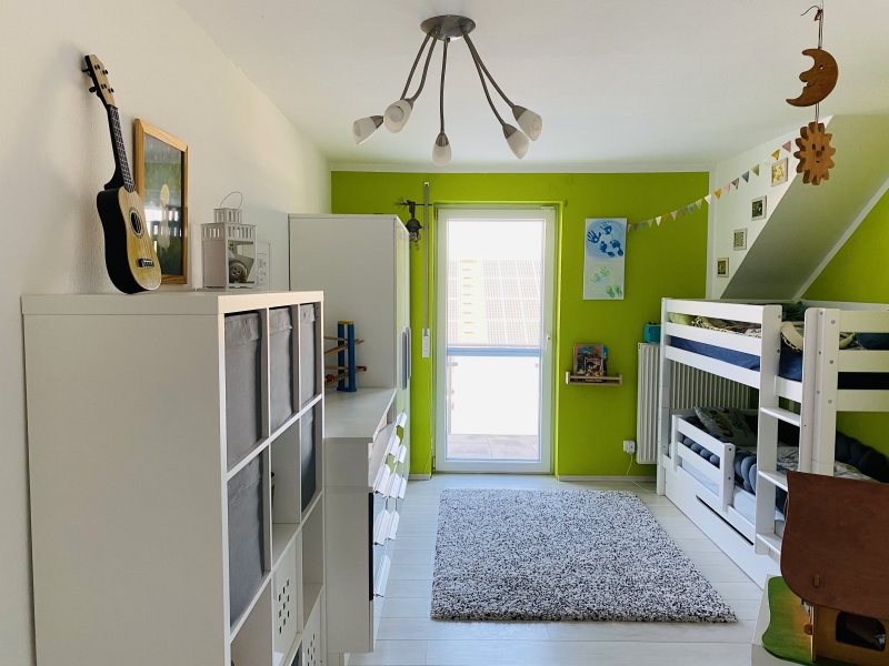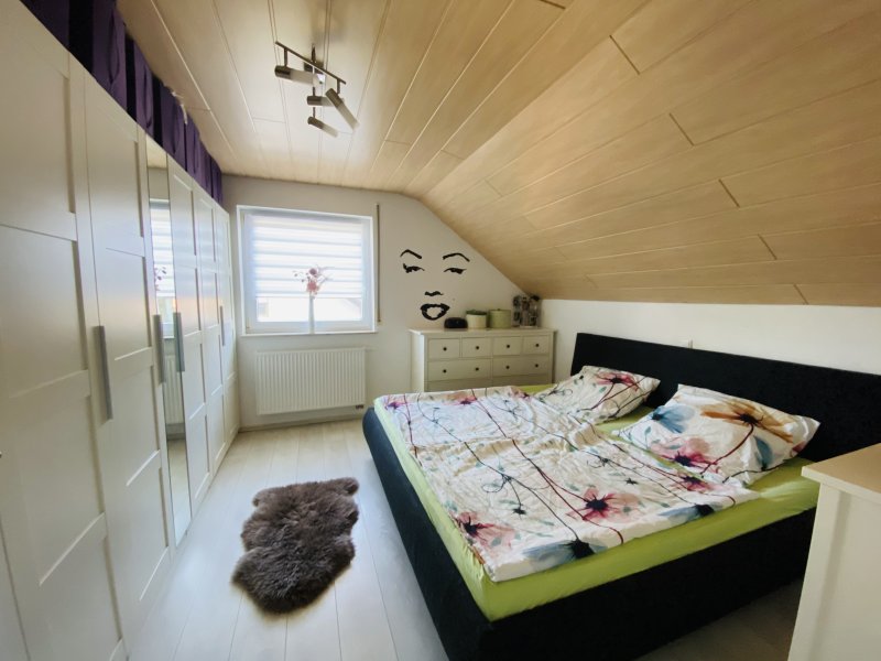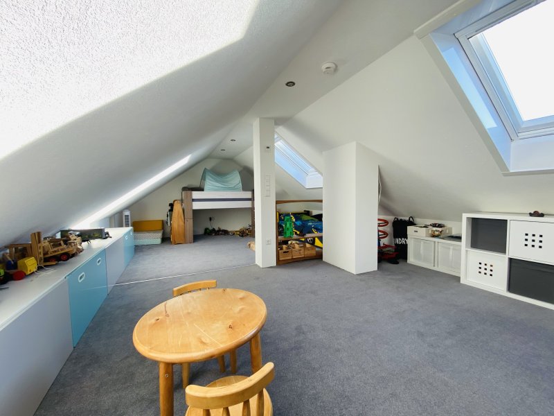 Das Dachgeschoss wurde 2019 ebenfalls komplett neu ausgebaut und hochwertig ausgestattet. 2 neue Dachgeschossfenster inkl. elektrischen Rolladen und Fliegenschutz wurde integriert. Eine neue Eichen-Echtholztreppe führt in das 22qm große Reich.