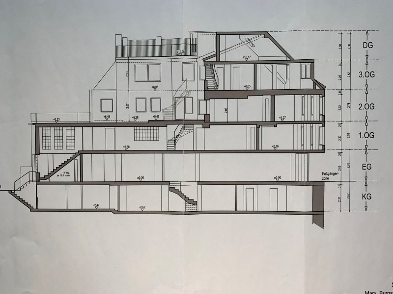 Das dreigeschossige, voll unterkellerte Wohn- und Geschäftshaus mit ausgebautem Dachgeschoss und Dachterrasse befindet sich in bester Wohn- und Geschäftslage