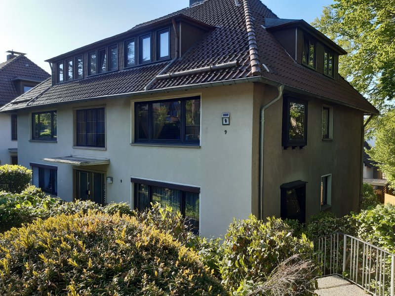Das Gebäude wurde 1956 errichtet und verfügt über ein ca. 892 m² großes Grundstück. Die Wohnfläche beträgt ca. 262 m². Das Gebäude verfügt über eine Wohnung sowie zusätzliche Büroflächen (ca. 84 m²) im Erdgeschoss.Im Erdgeschoss gelangt man über den Wohnbereich auf eine ca. 18 m² große Terrasse sowie zu einer gepflegten Rasenfläche.
